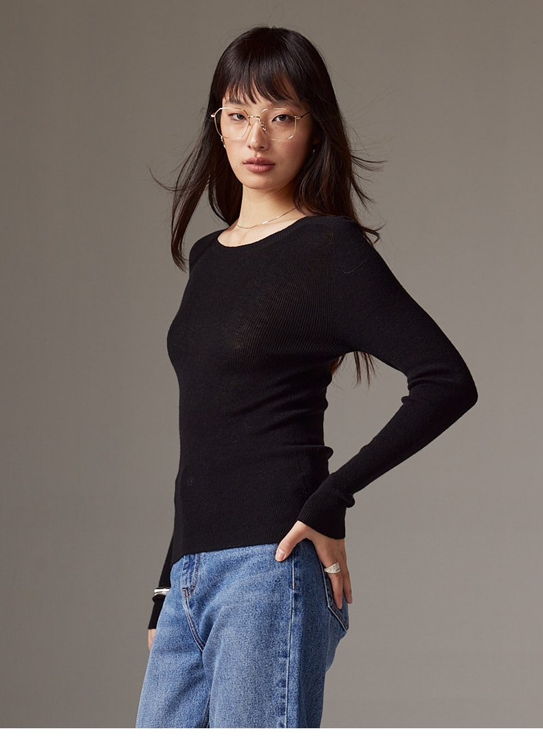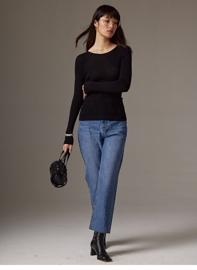 IN AND ON可机洗绵羊毛 无缝一体圆领针织打底衫53671