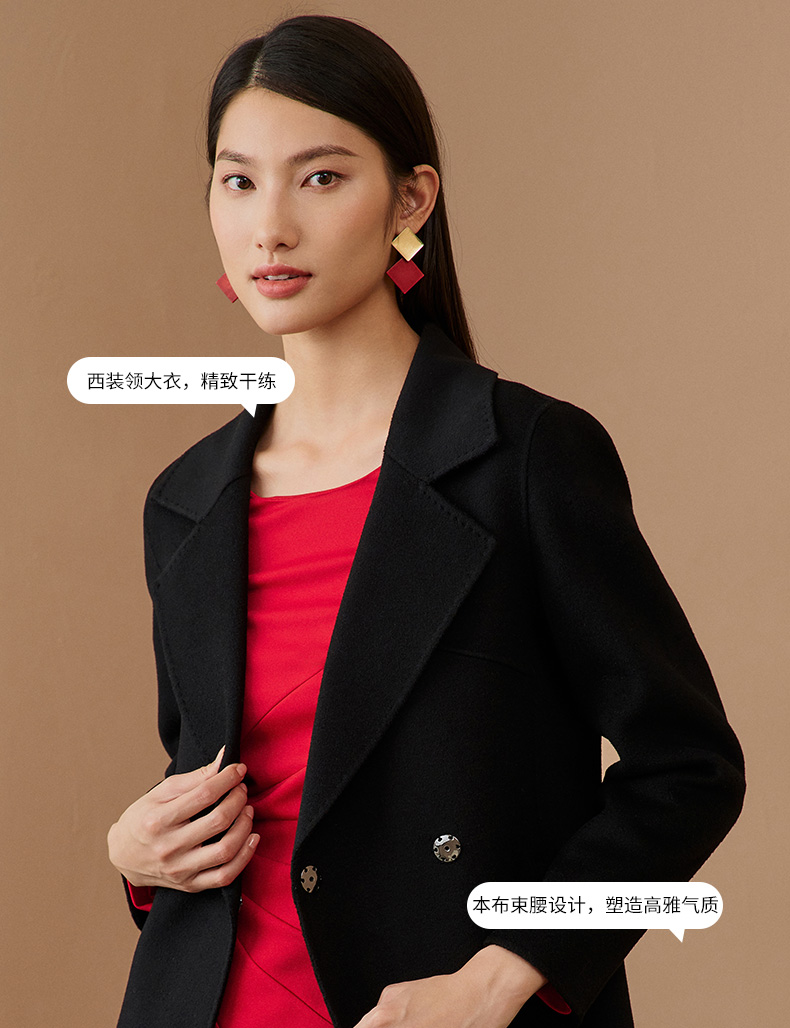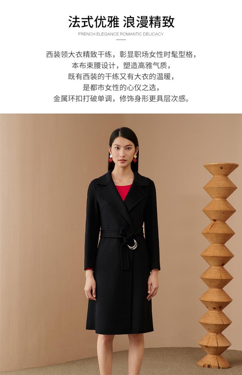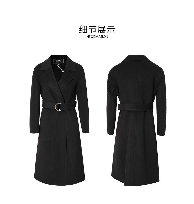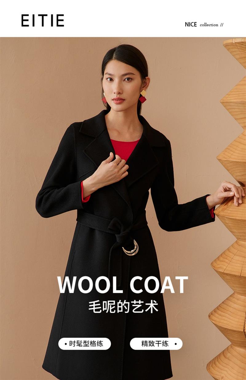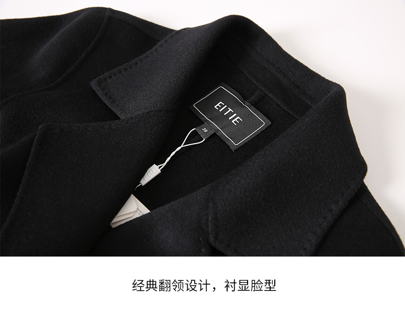 EITIE爱特爱正肩收腰黑色纯羊毛大衣呢外套大气通勤冬季新款D2214001