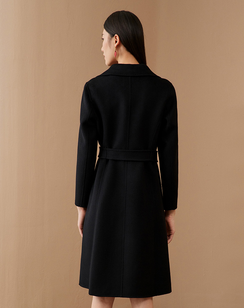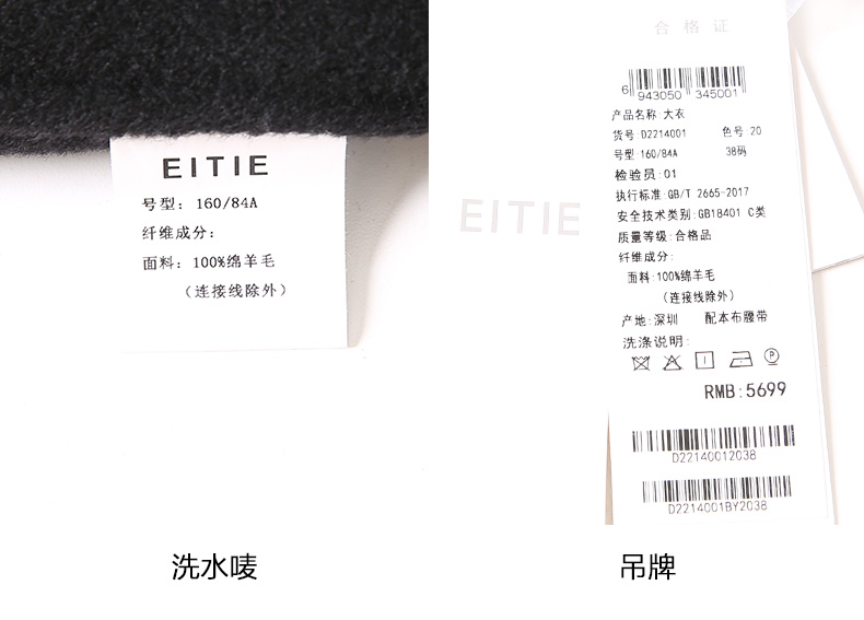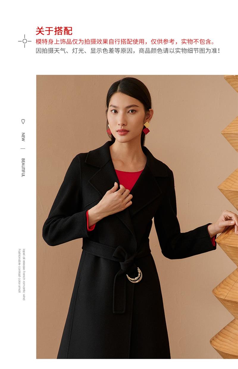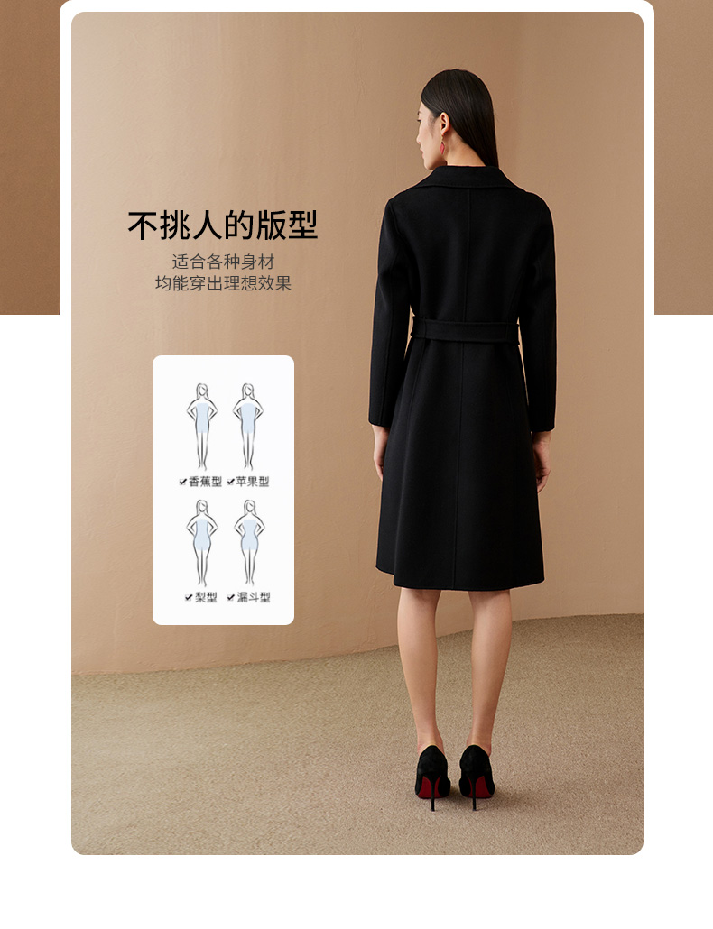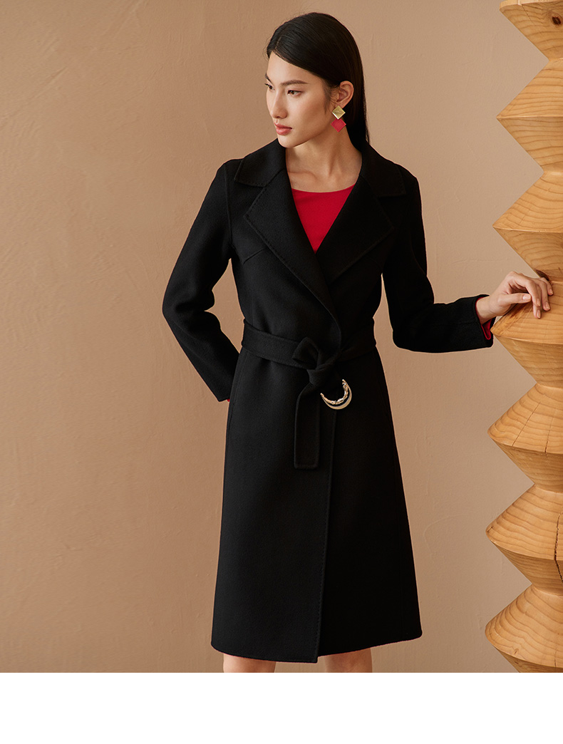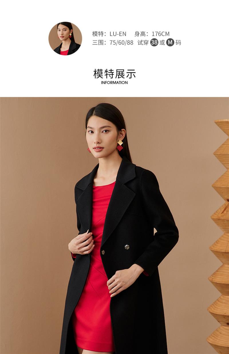 EITIE爱特爱正肩收腰黑色纯羊毛大衣呢外套大气通勤冬季新款D2214001
