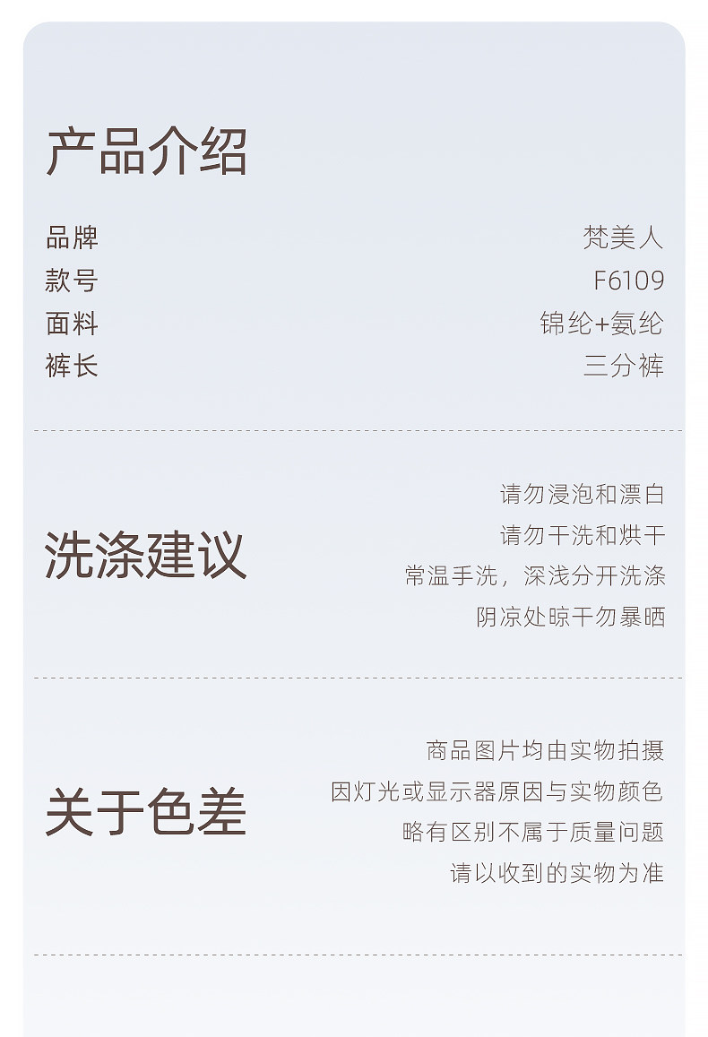 梵美人 F6109 瑜伽三分裤 【尼龙66金标莱卡】无松紧 无尴尬线