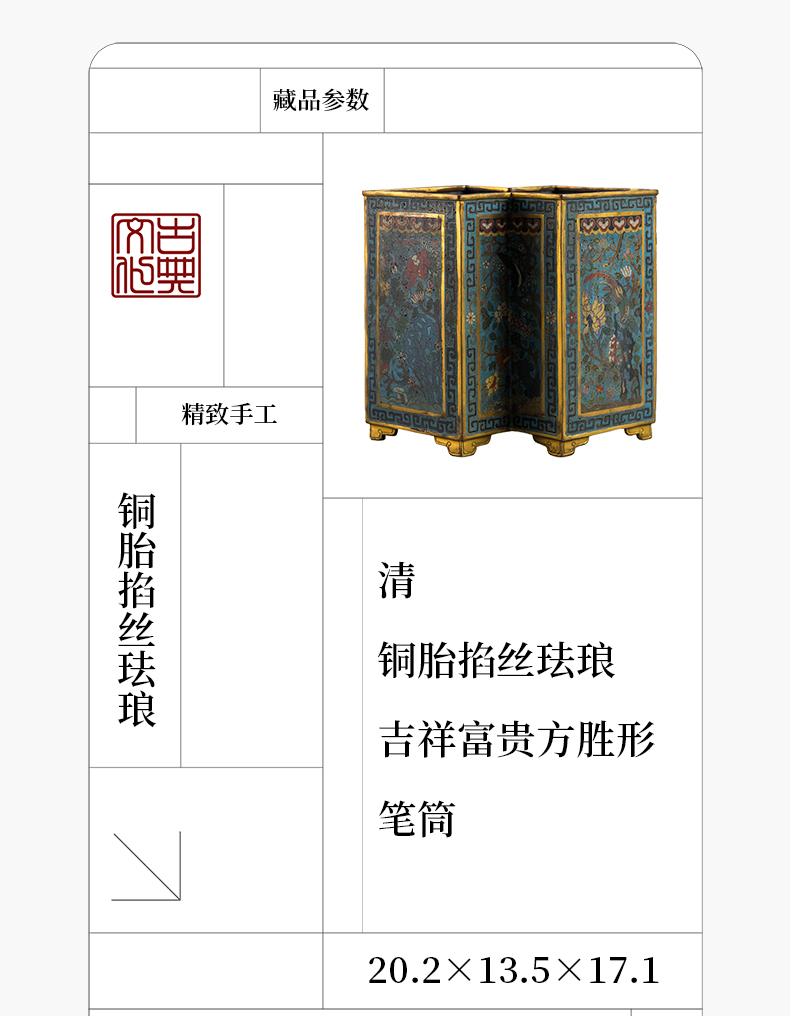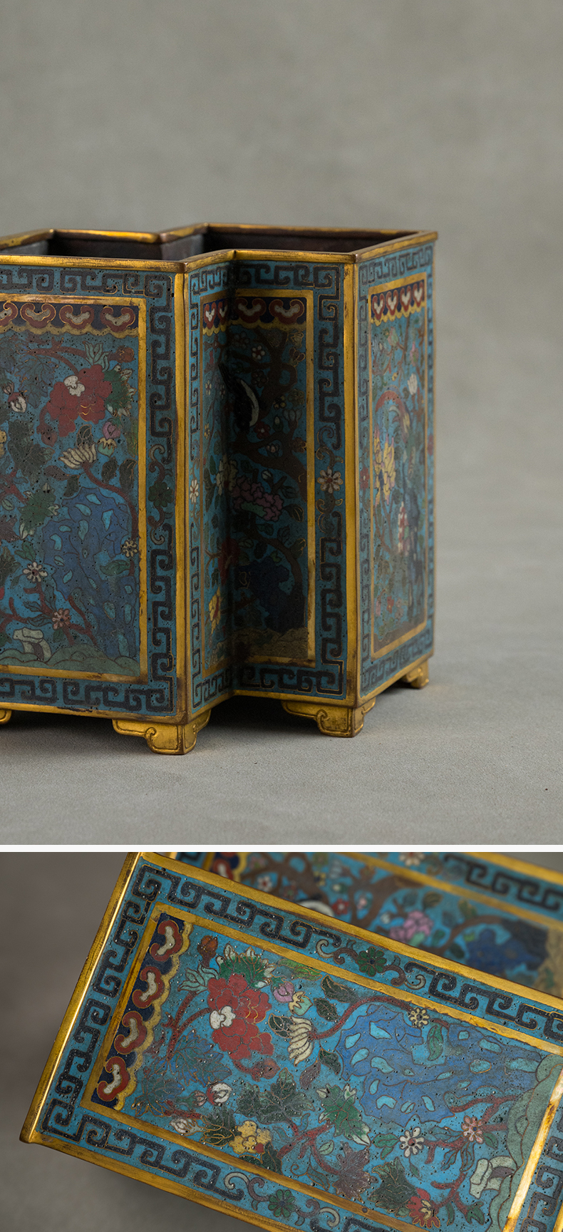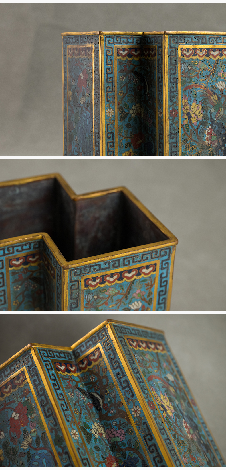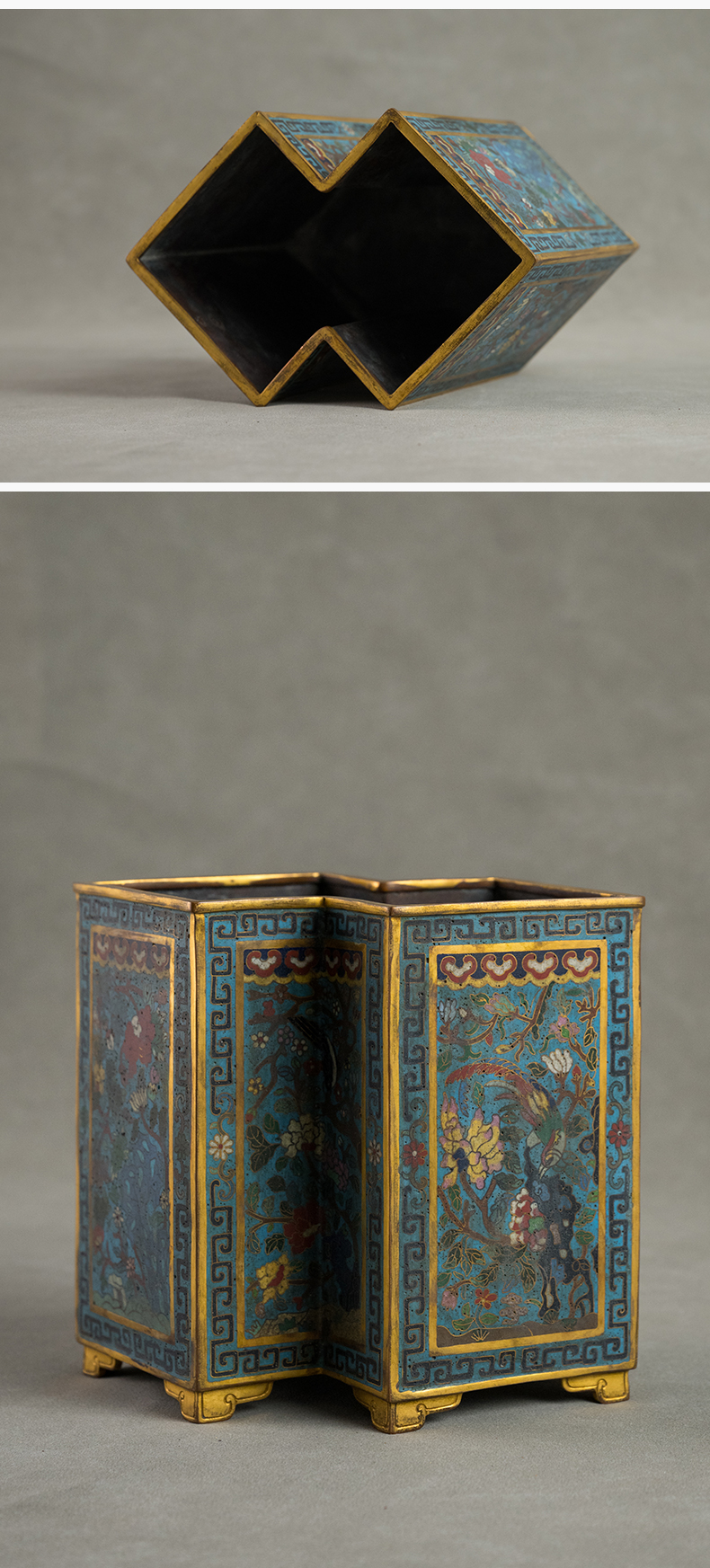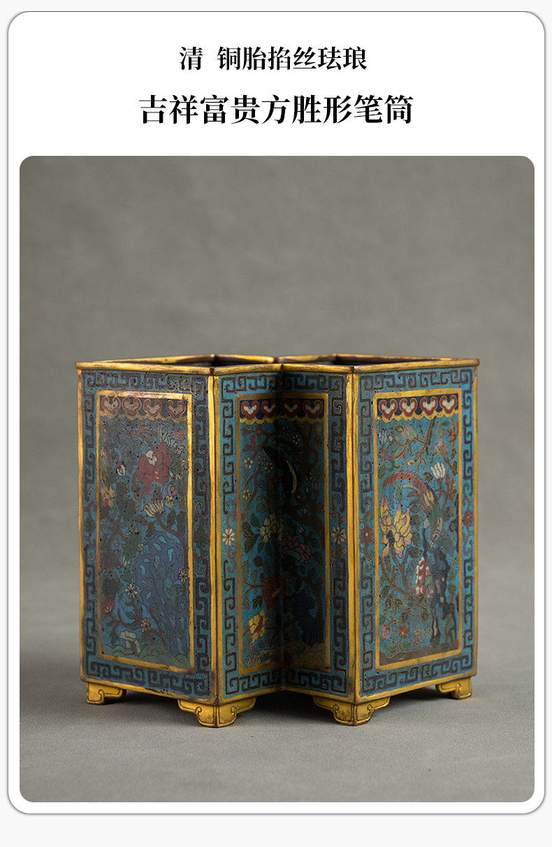 清 铜胎掐丝珐琅吉祥富贵方胜形笔筒