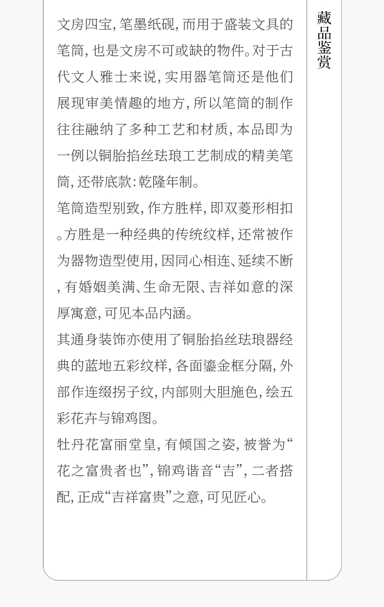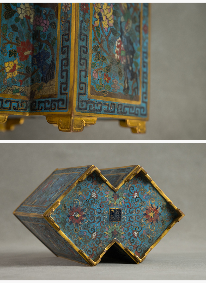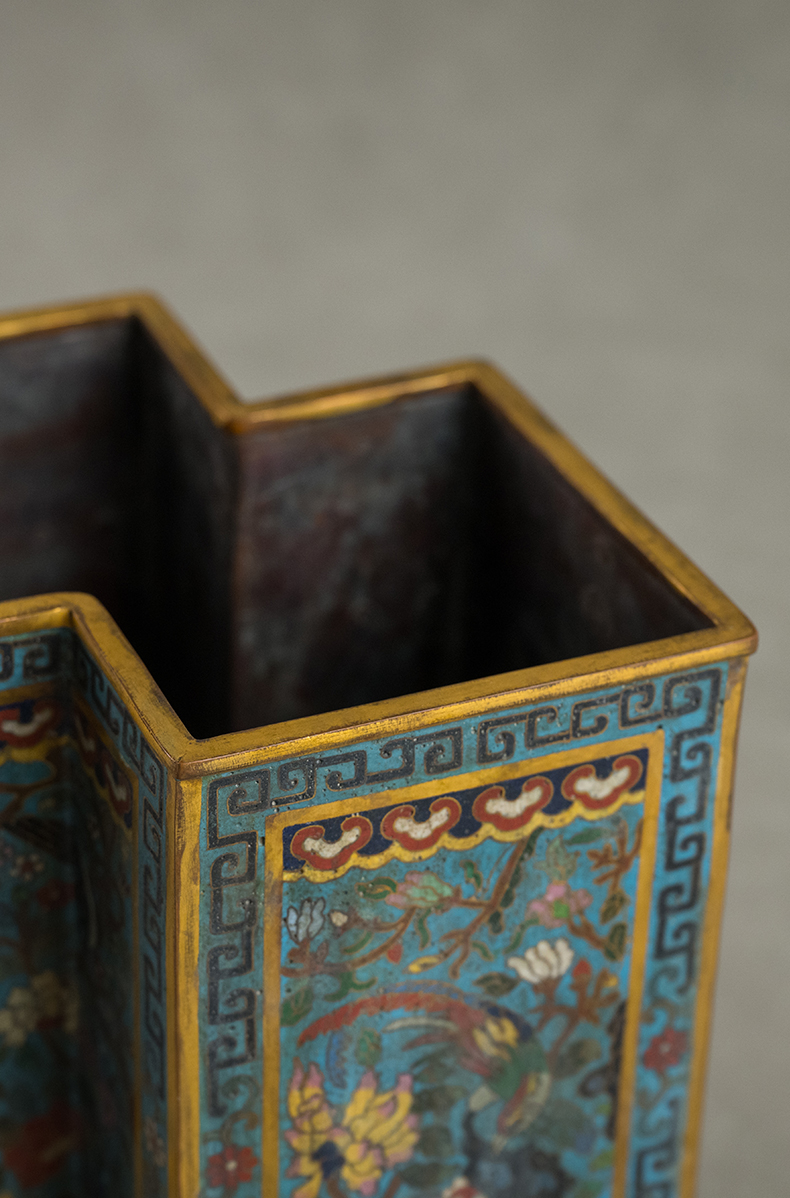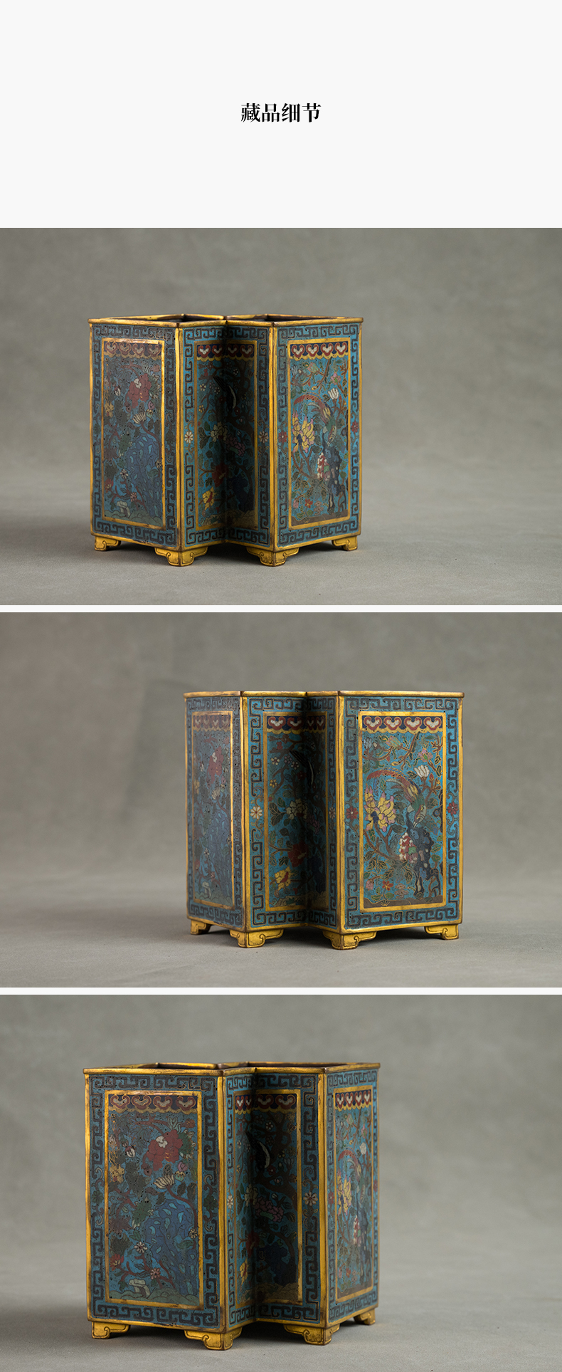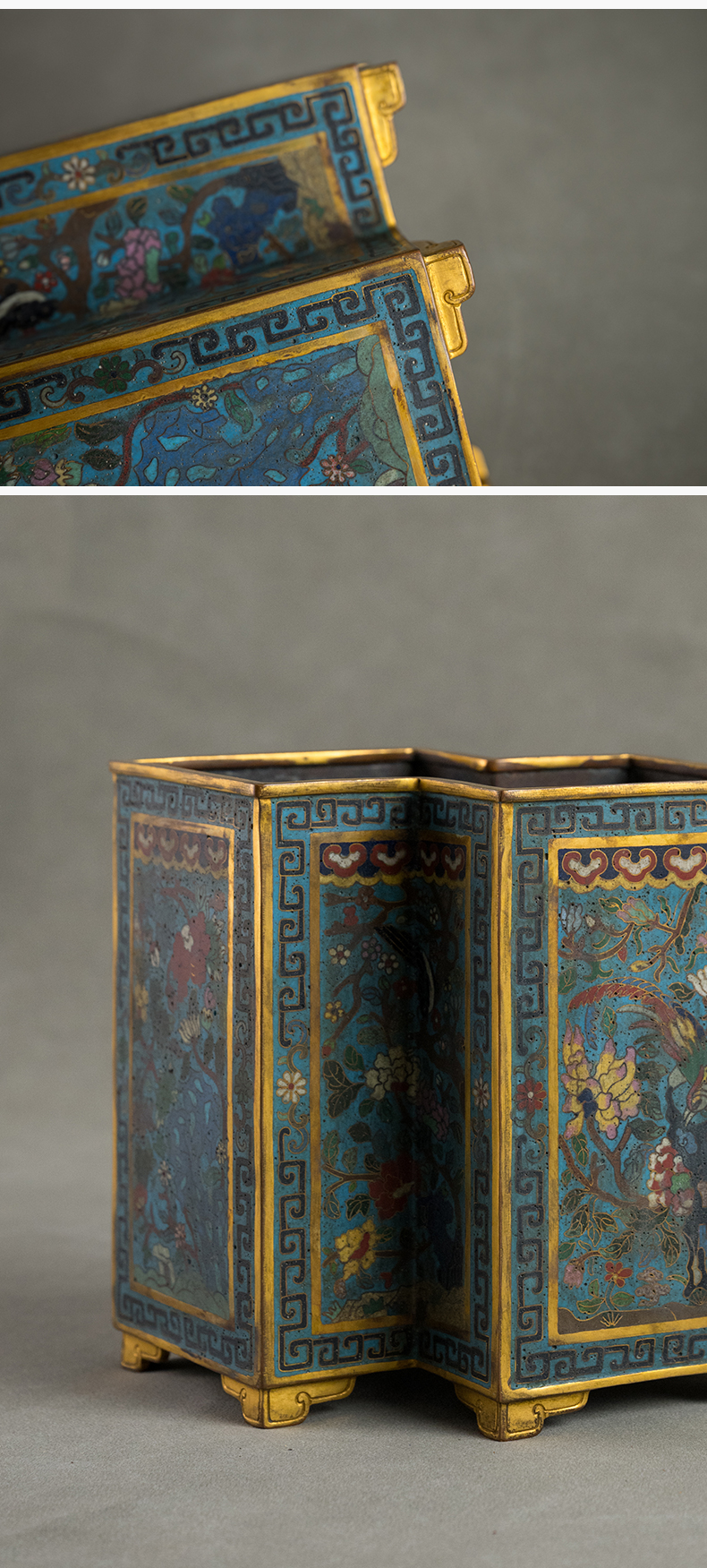 清 铜胎掐丝珐琅吉祥富贵方胜形笔筒