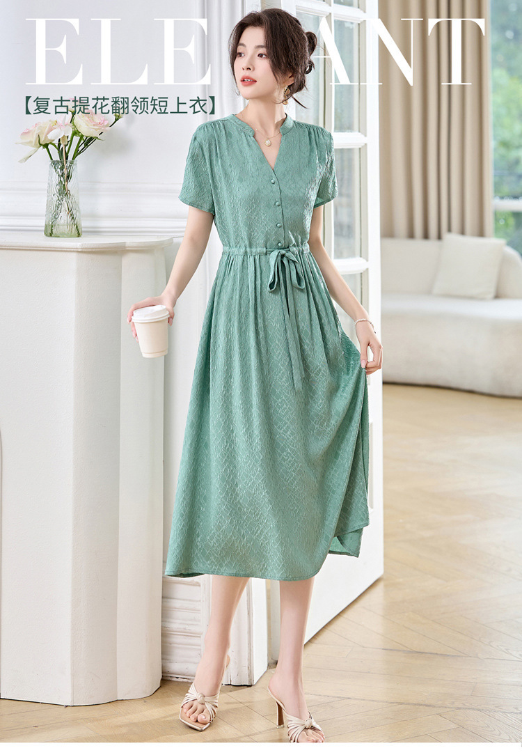 ASE夏季新款真丝高端大气V领连衣裙纯色通勤百搭系带显瘦裙
