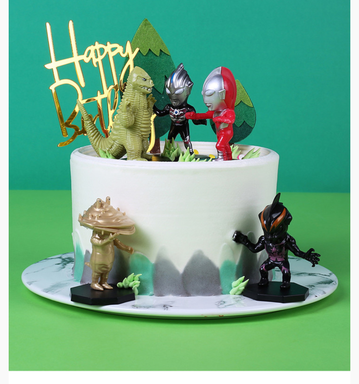 奥特曼儿童生日蛋糕双层【勇敢打败三个小怪兽】