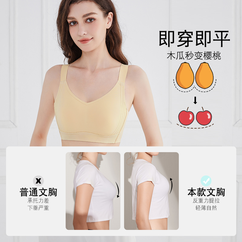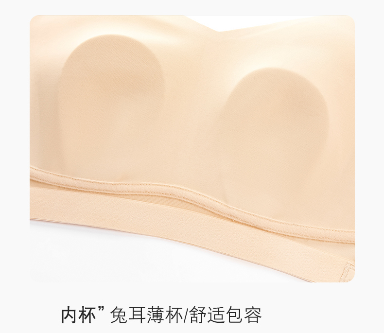 1、兔耳柔棉薄杯,轻薄毫无负担感,光面无痕,穿着不凸点更安心,固定杯不走位,无感承托无束缚,大胸显小,无痕反重力提拉,全罩大包容显小,视觉效果显小1-2个罩杯,软软无钢圈,卷起巴掌大,出门好收纳。
