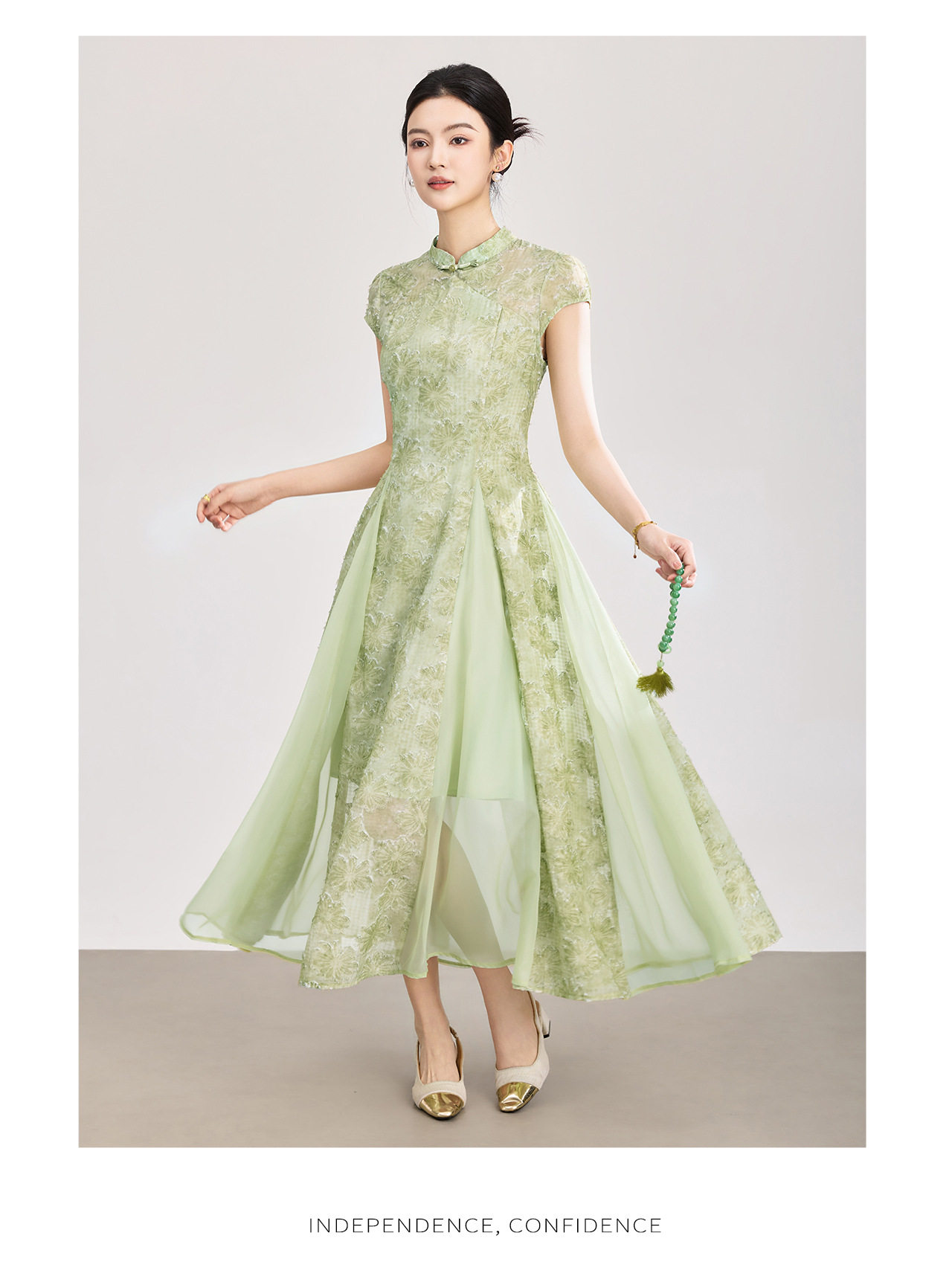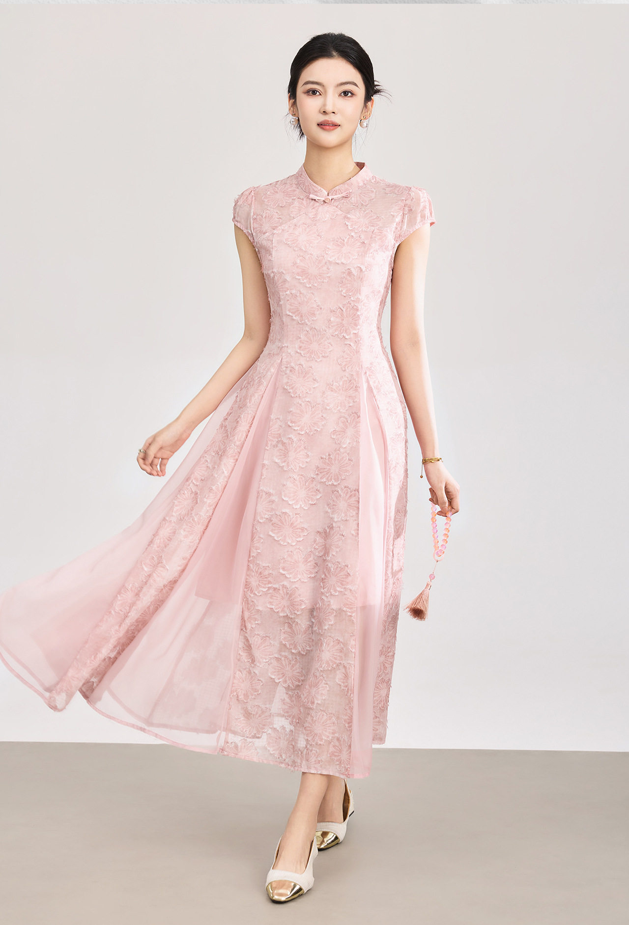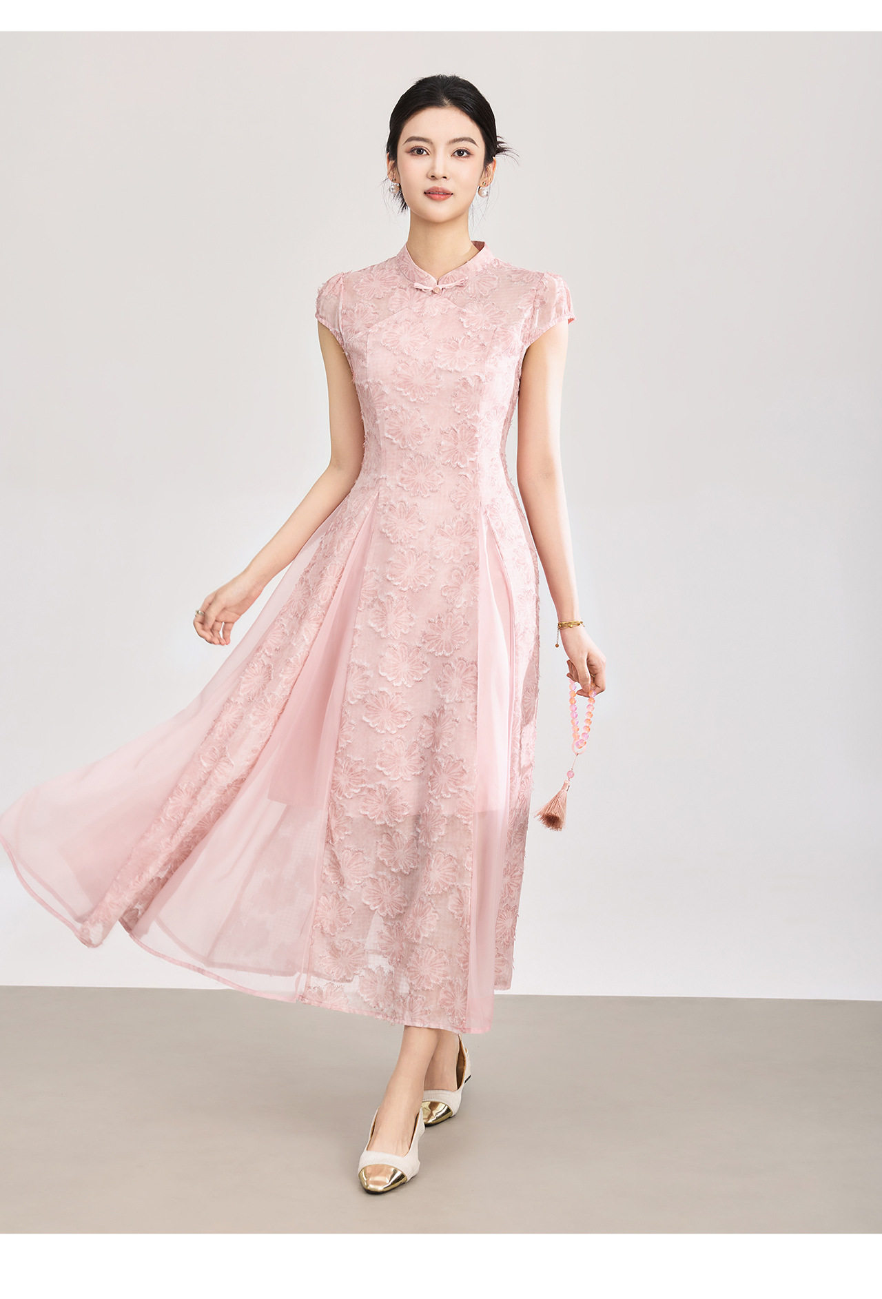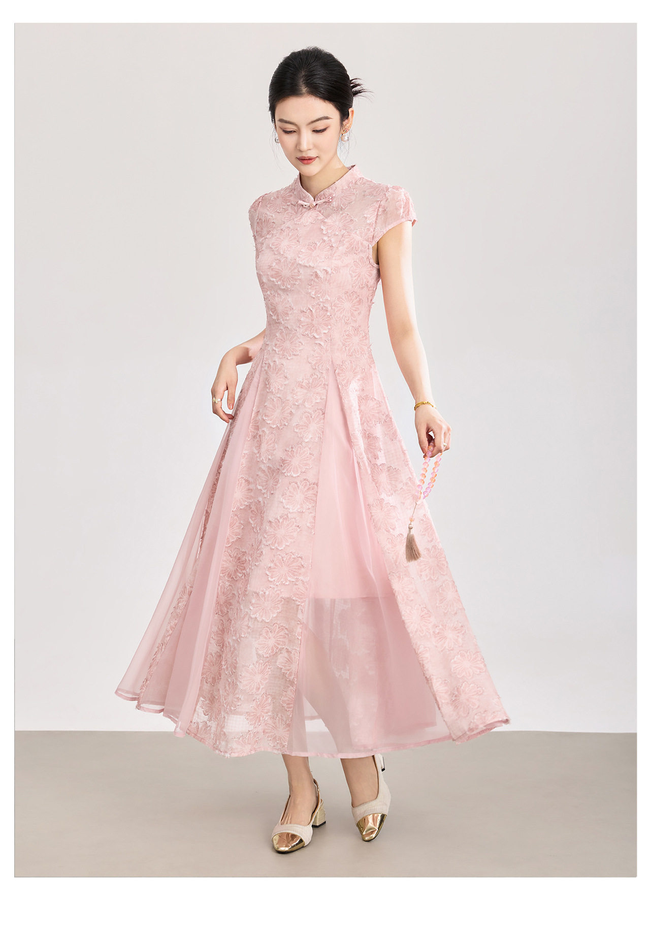 「高货wl」全新升级【铂金会员358/天猫479/差价121】(00105)洛诗琳新中式立体烧花连衣裙2026新款收腰国风改良旗袍裙