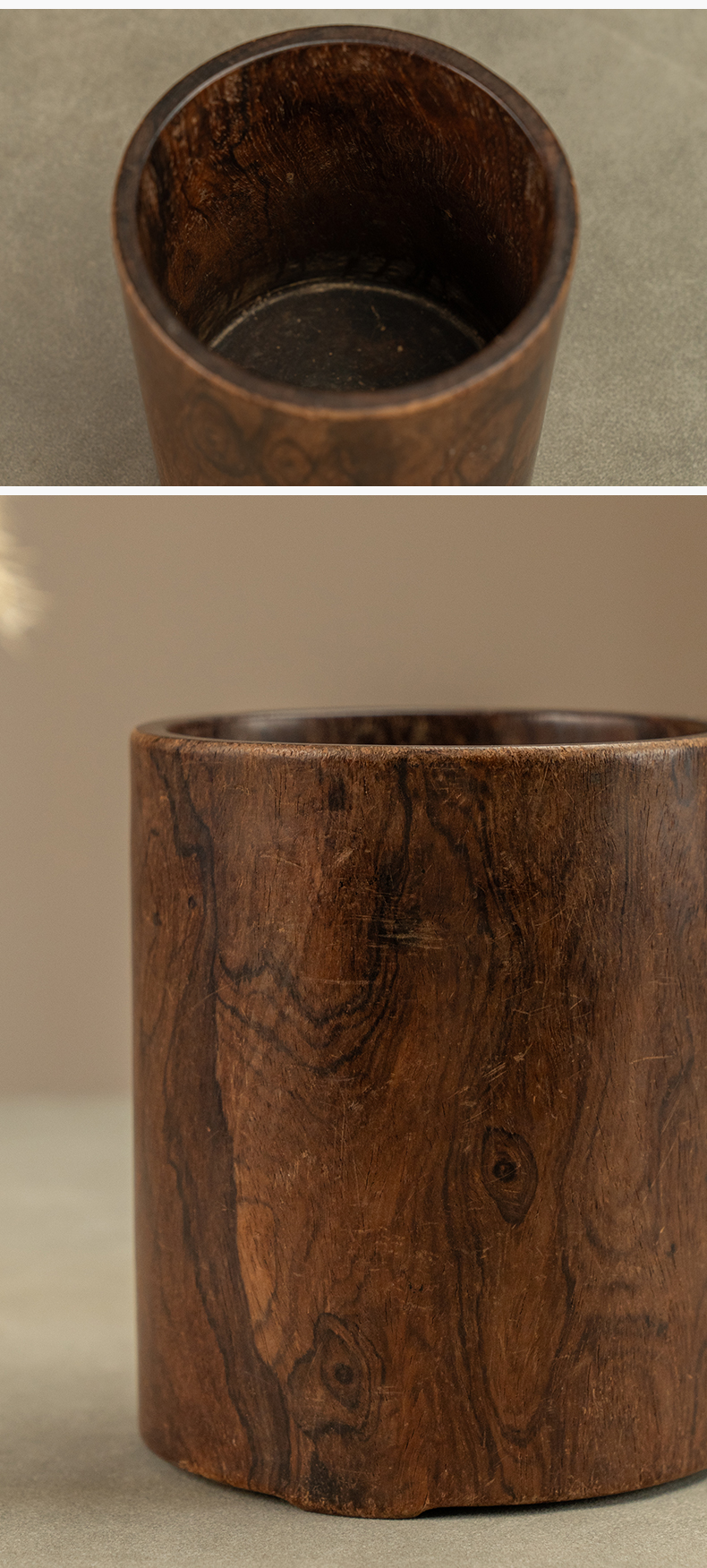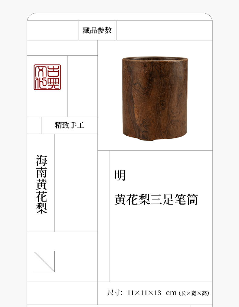 明 黄花梨三足笔筒