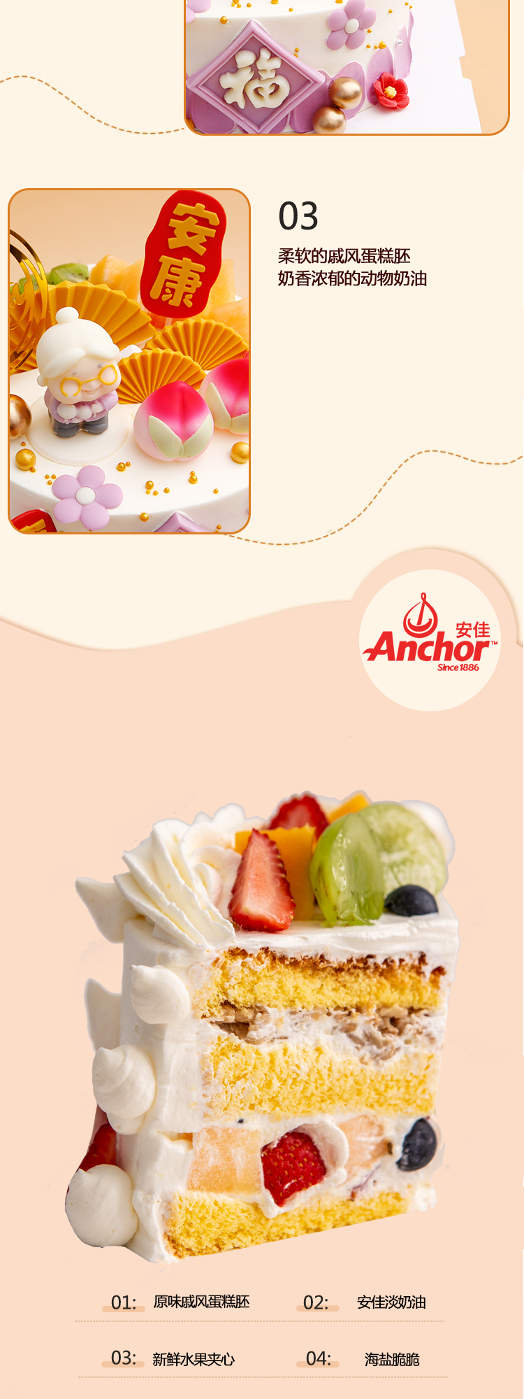 (多规格)福气满满蛋糕优质动物奶油乳香纯正,搭配蓬松戚风胚,口感细腻温润,是经典又稳妥的选择。