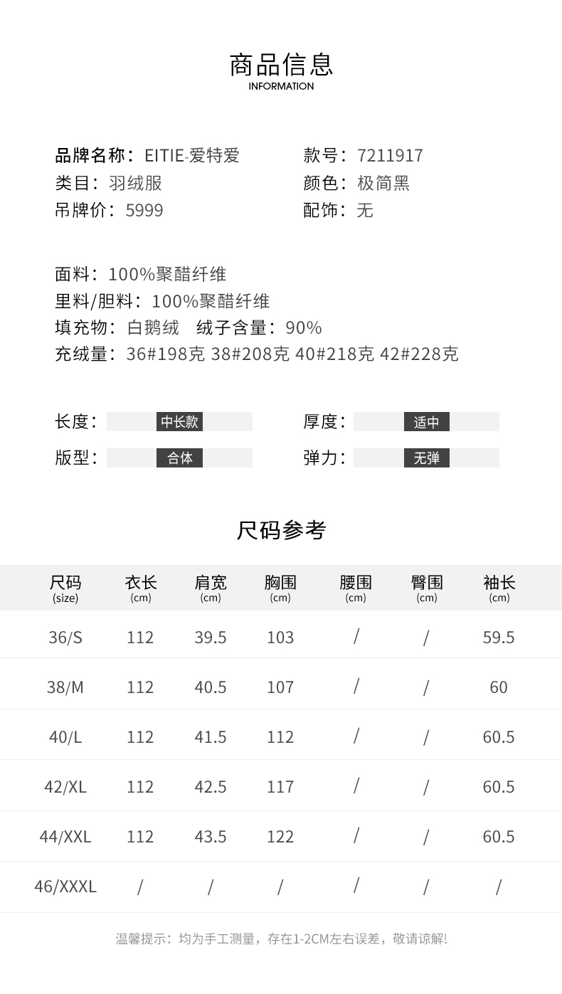 EITIE爱特爱冬季新款保暖羽绒服女中长款7211917