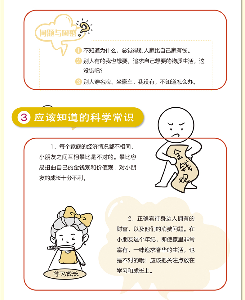 本书从小朋友日常生活中与金钱息息相关的问题入手,把金钱问题变成简单的生活科普问题,让小朋友在金钱观念、金钱管理、金钱使用等方面,得到系统学习和训练,从而提高自己科学用钱的能力。