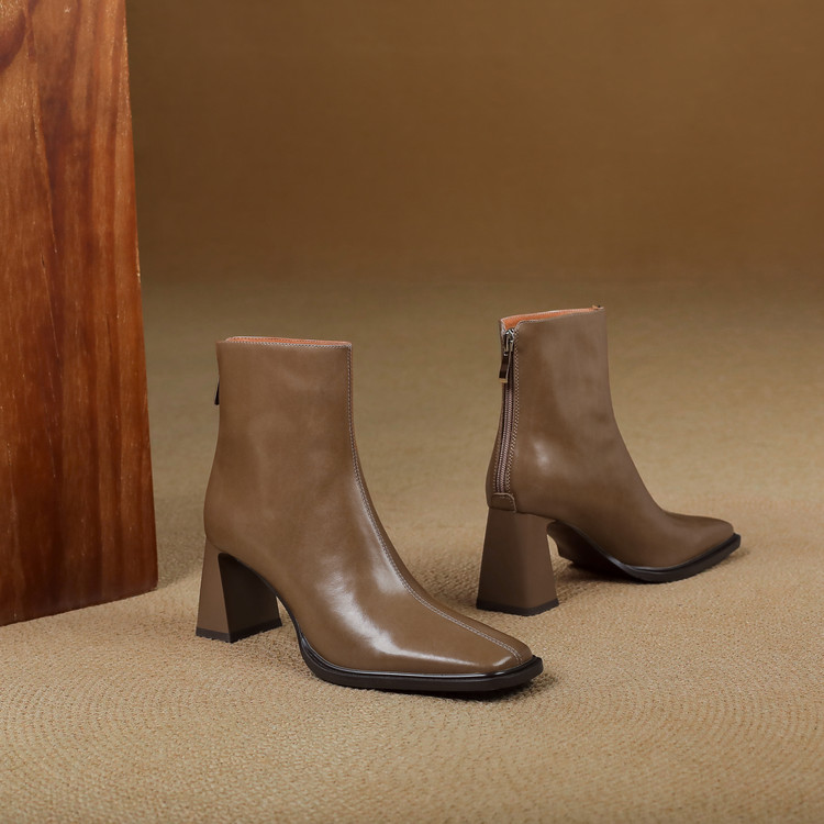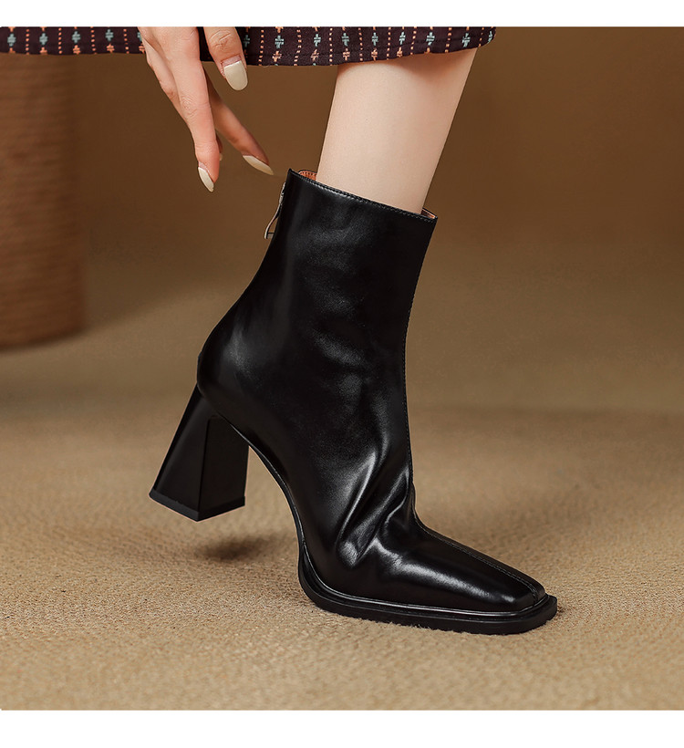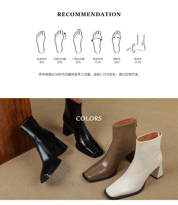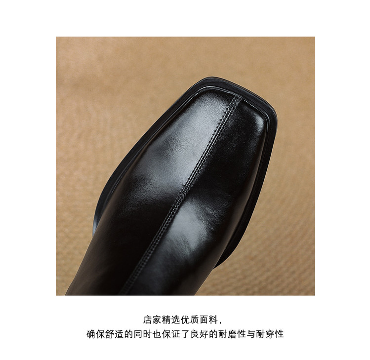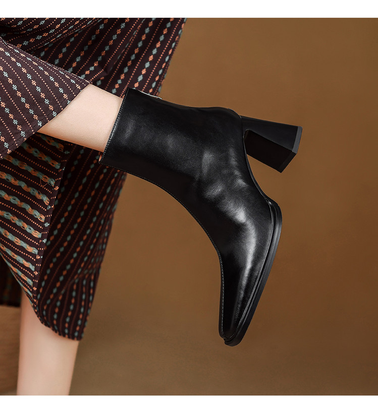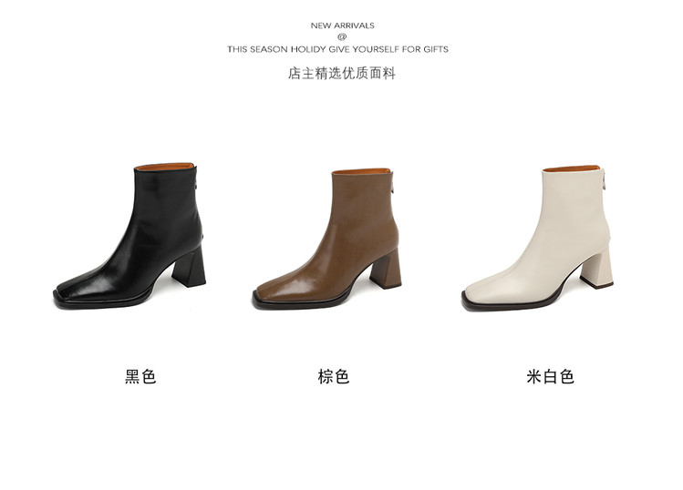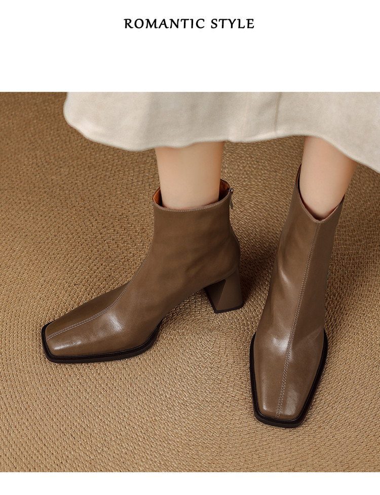【预售5天】知性优雅气质款!牛皮粗高跟短靴女秋冬季方头通勤职业ol单靴SLLK&sl-7958