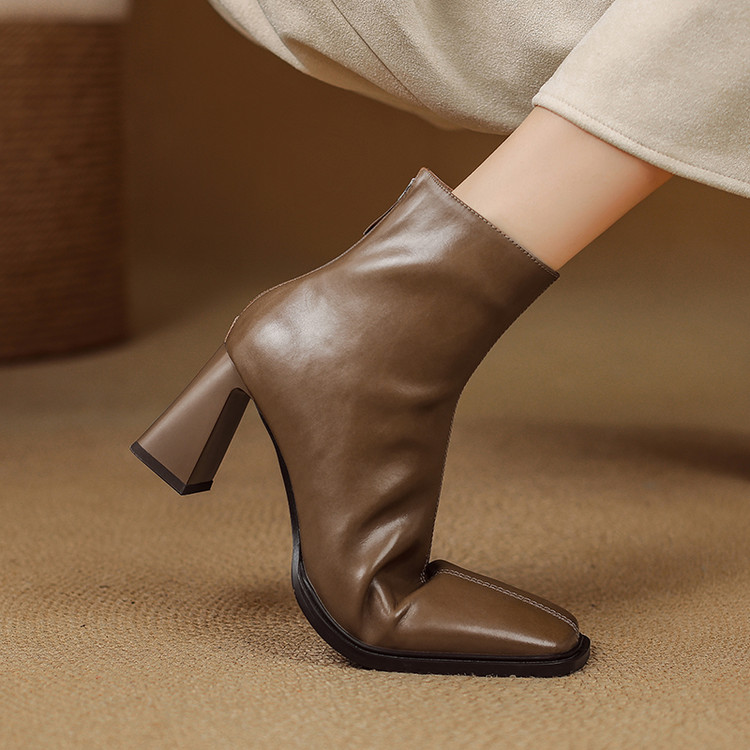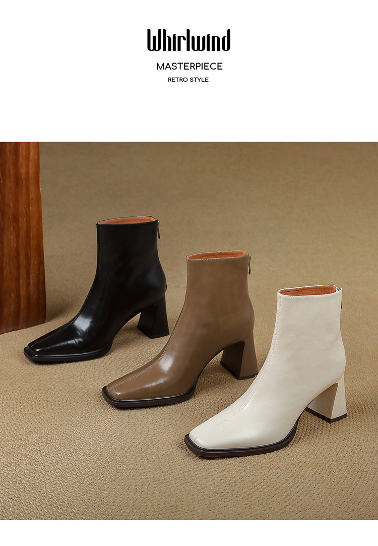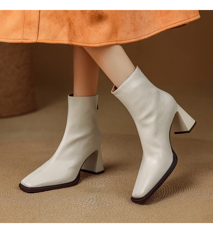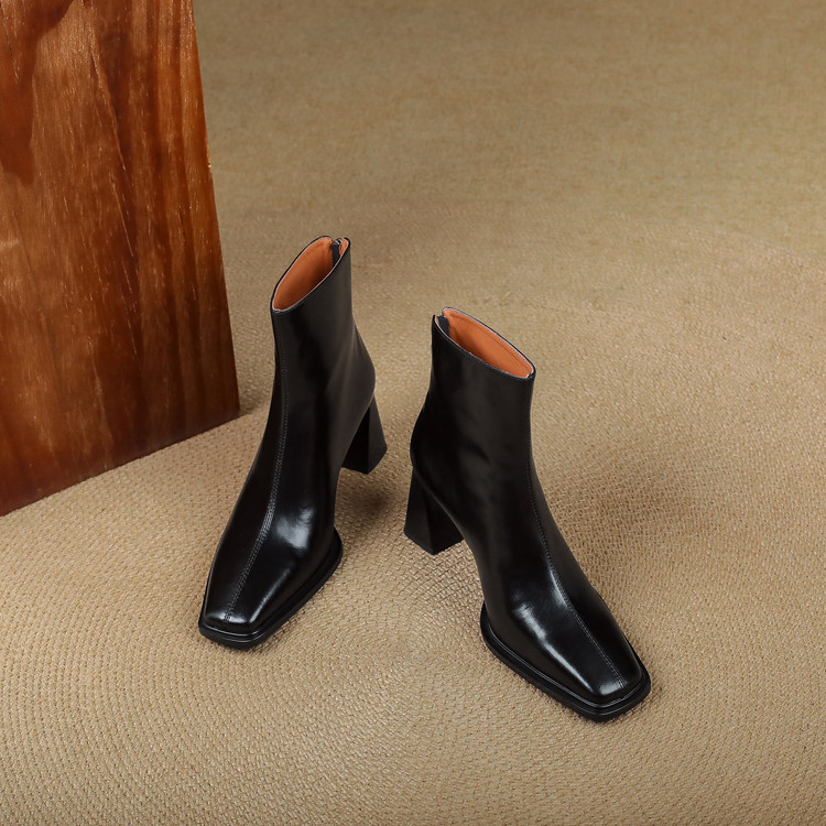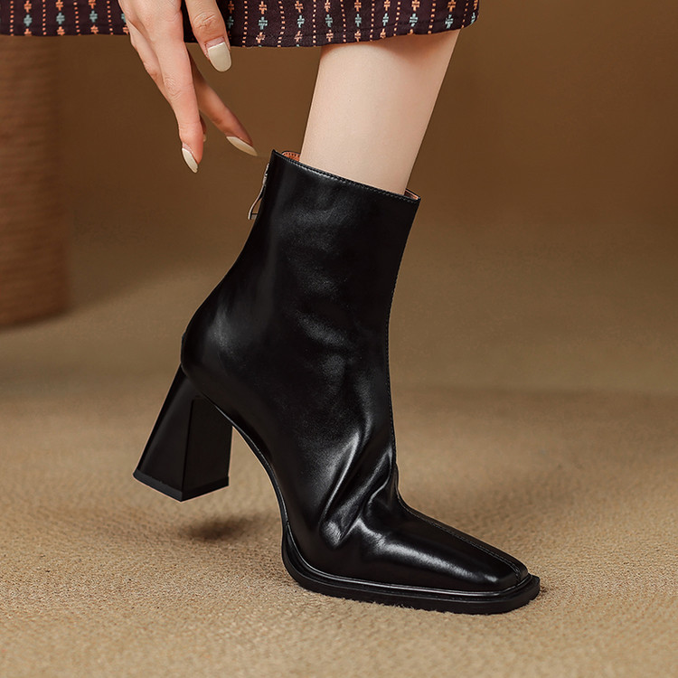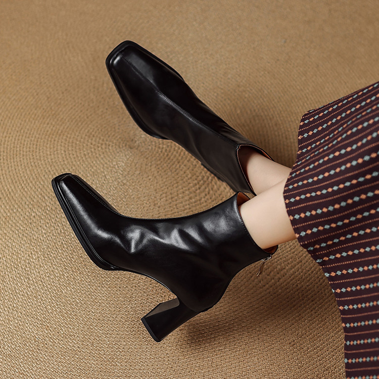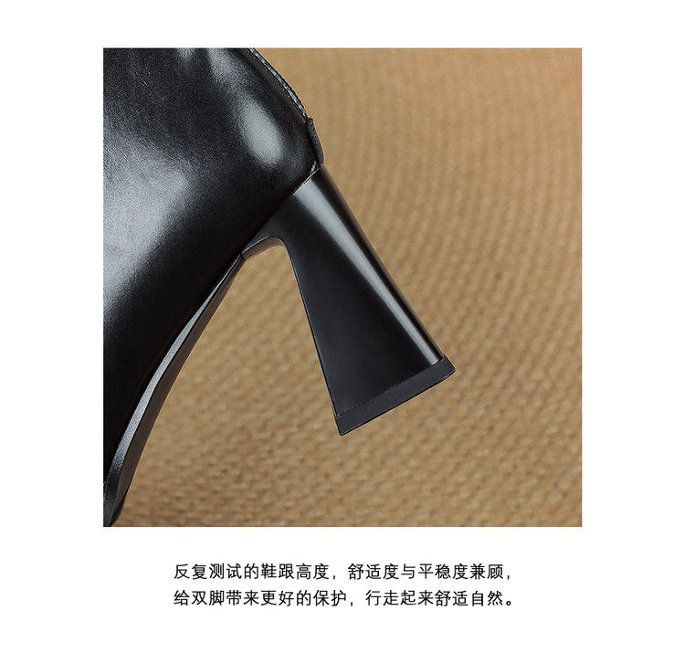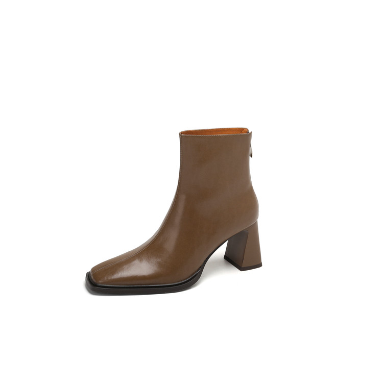 【预售5天】知性优雅气质款!牛皮粗高跟短靴女秋冬季方头通勤职业ol单靴SLLK&sl-7958