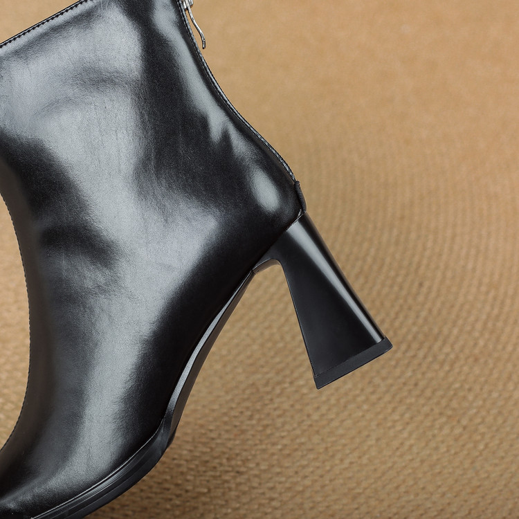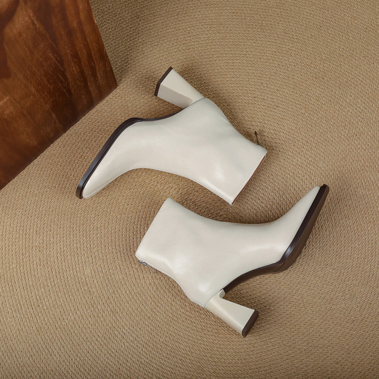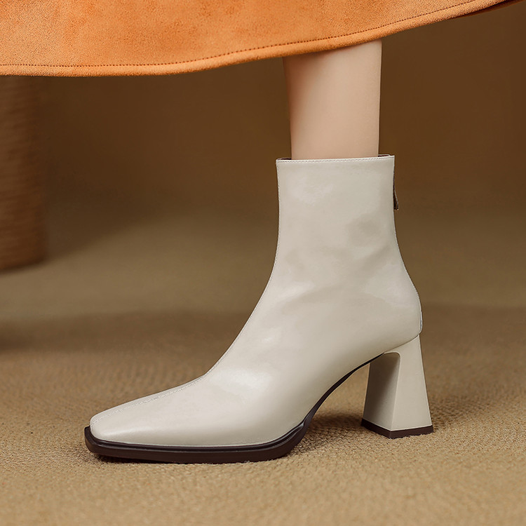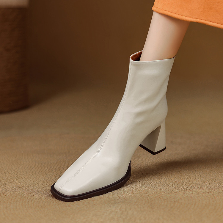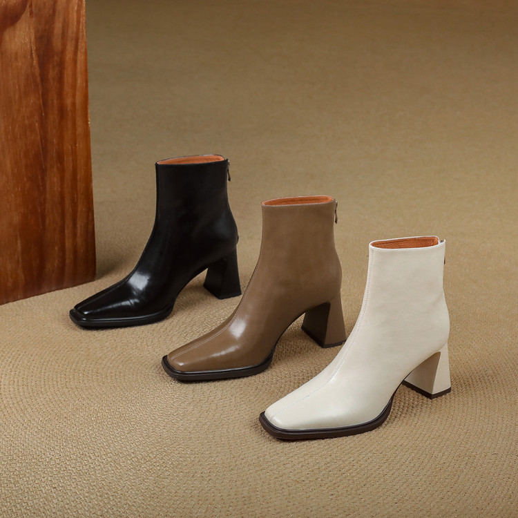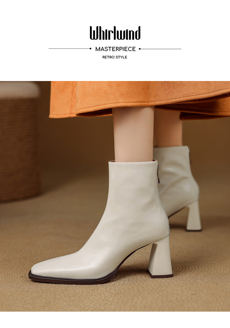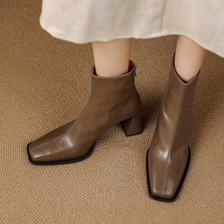【预售5天】知性优雅气质款!牛皮粗高跟短靴女秋冬季方头通勤职业ol单靴SLLK&sl-7958