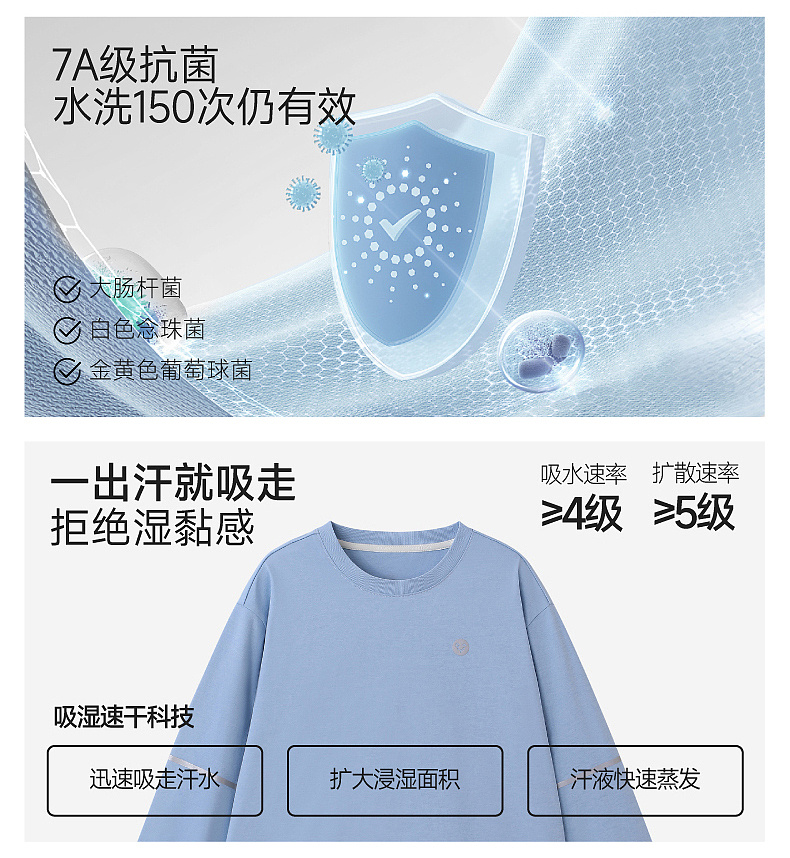 【7A抗菌+吸湿速干】英氏儿童T恤男童春夏凉感休闲上衣户外百搭