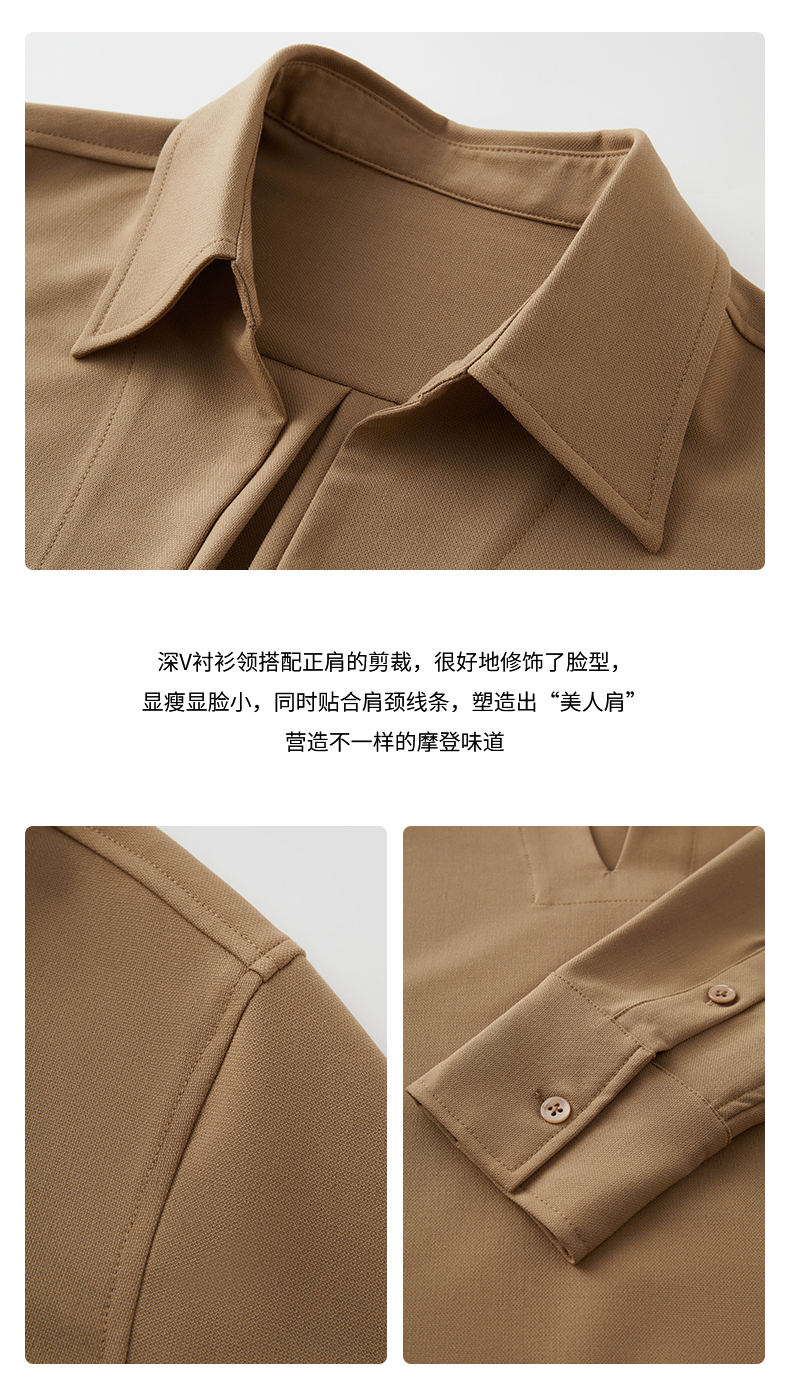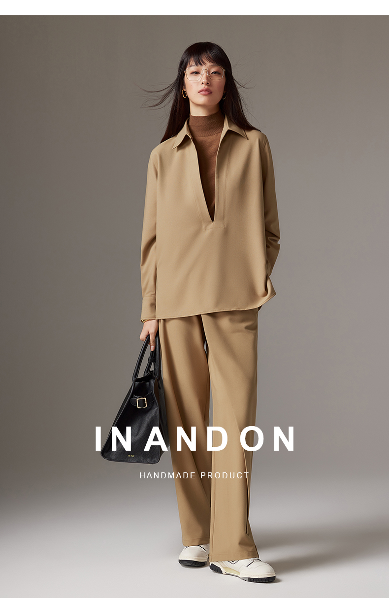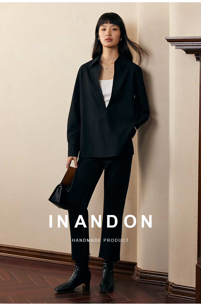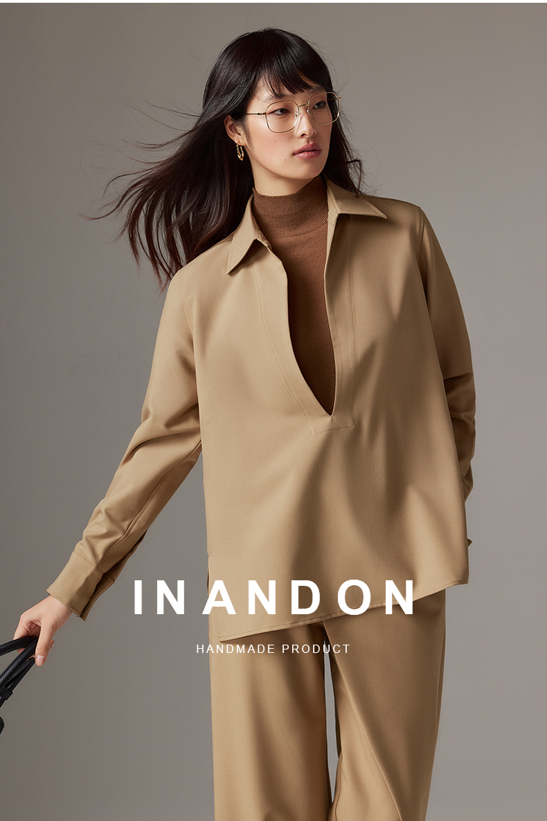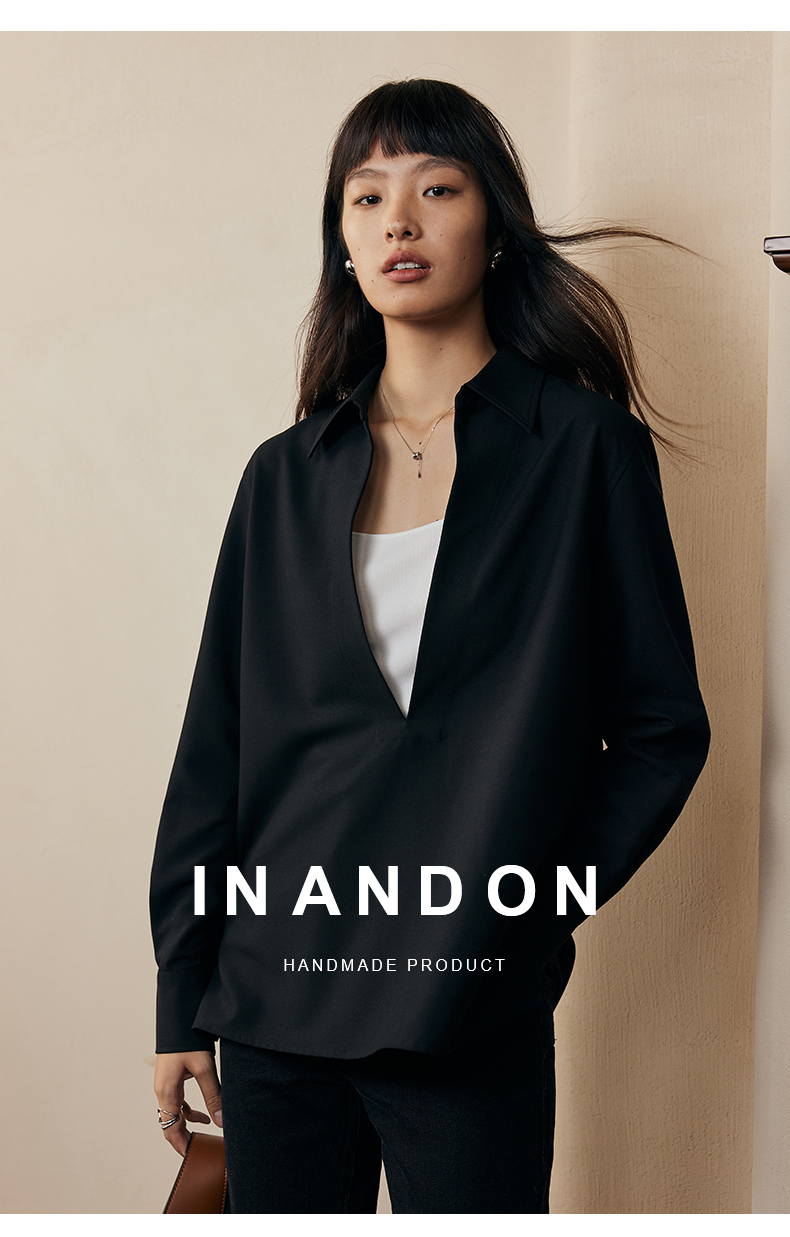【叠穿神器】IN AND ON柔滑抗皱面料深V廓形衬衫女53509