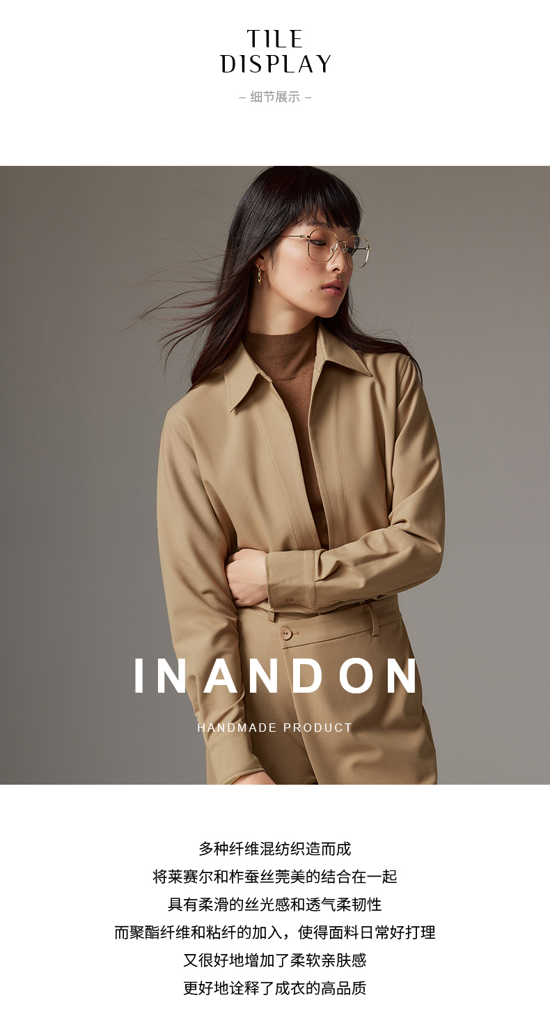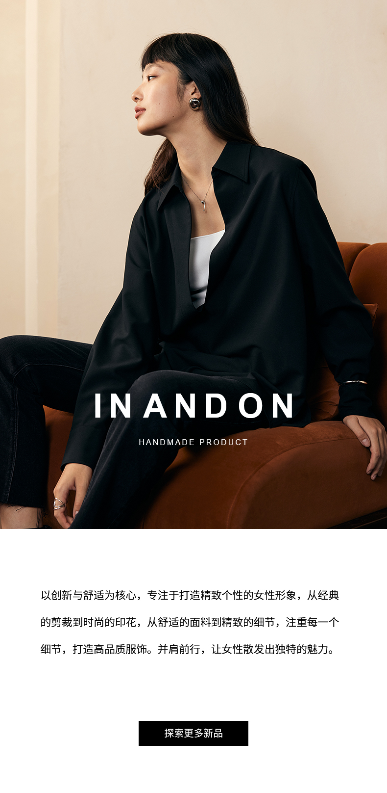 IN AND ON—轻奢时尚品牌,以“致力于做你衣柜永远不肯丢掉的那一件”作为品牌理念,打造“轻奢时尚”的品牌定位。拥有时尚前沿的商品设计能力并将品质与价值进行完美平衡,致力为消费者提供舒适与奢华、创新与智能的完美购物体验。塑造独立自主的女性形象,让每个人都能拥有属于自己的时尚风格。