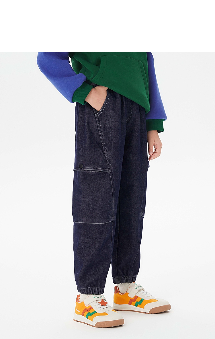 【MQD】童装男大童冬季加绒休闲牛仔长裤儿童加厚保暖裤子潮