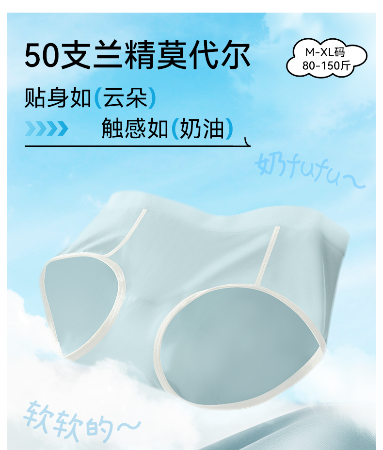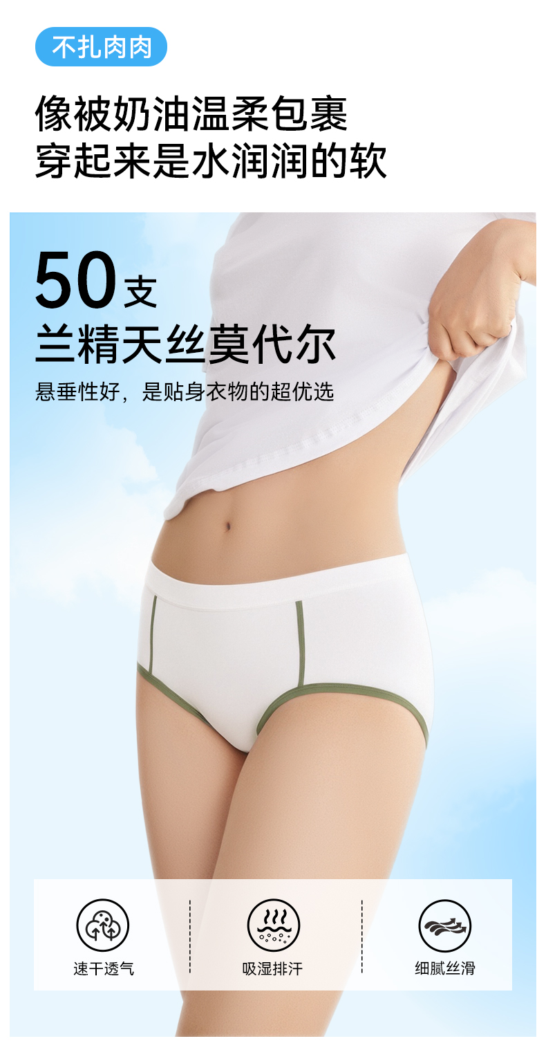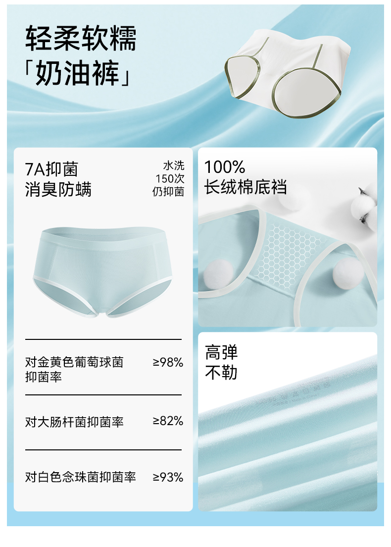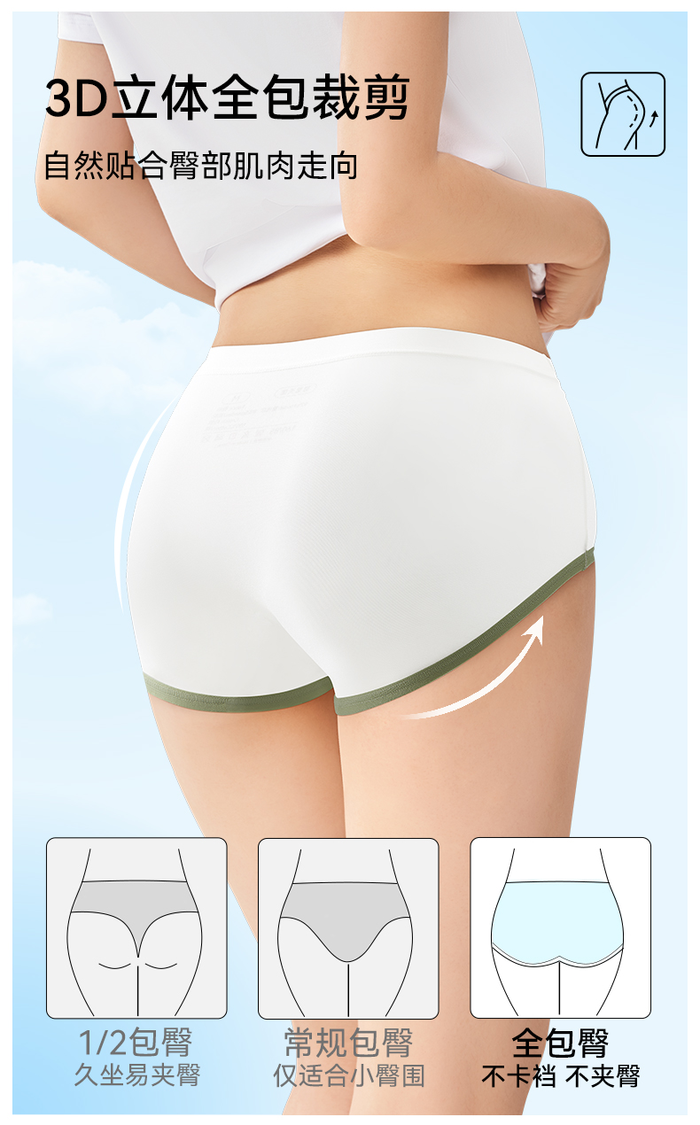 彗星天使7A抑菌水润软糯触感舒适全包臀不卡档不夹臀女士内裤K08#
