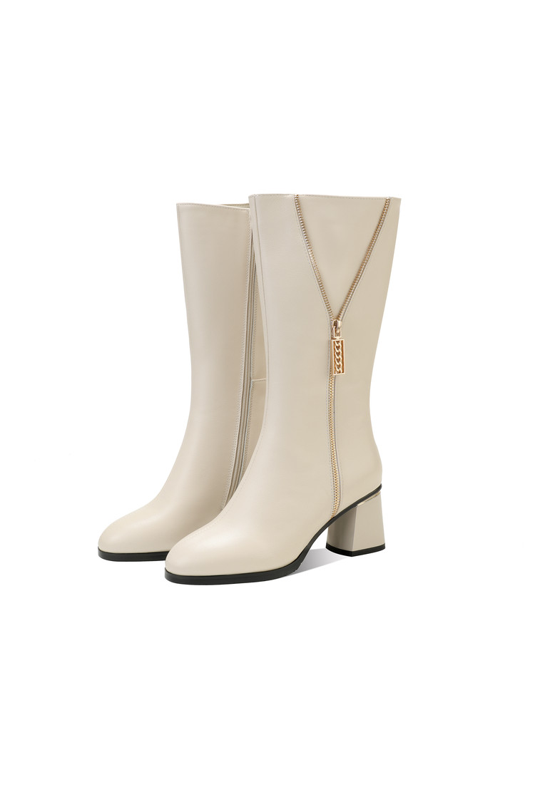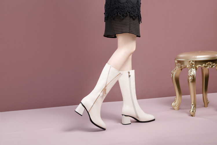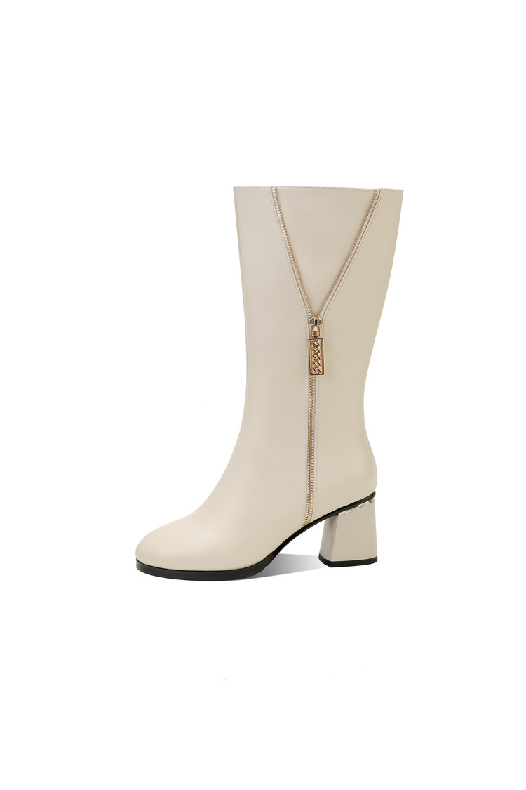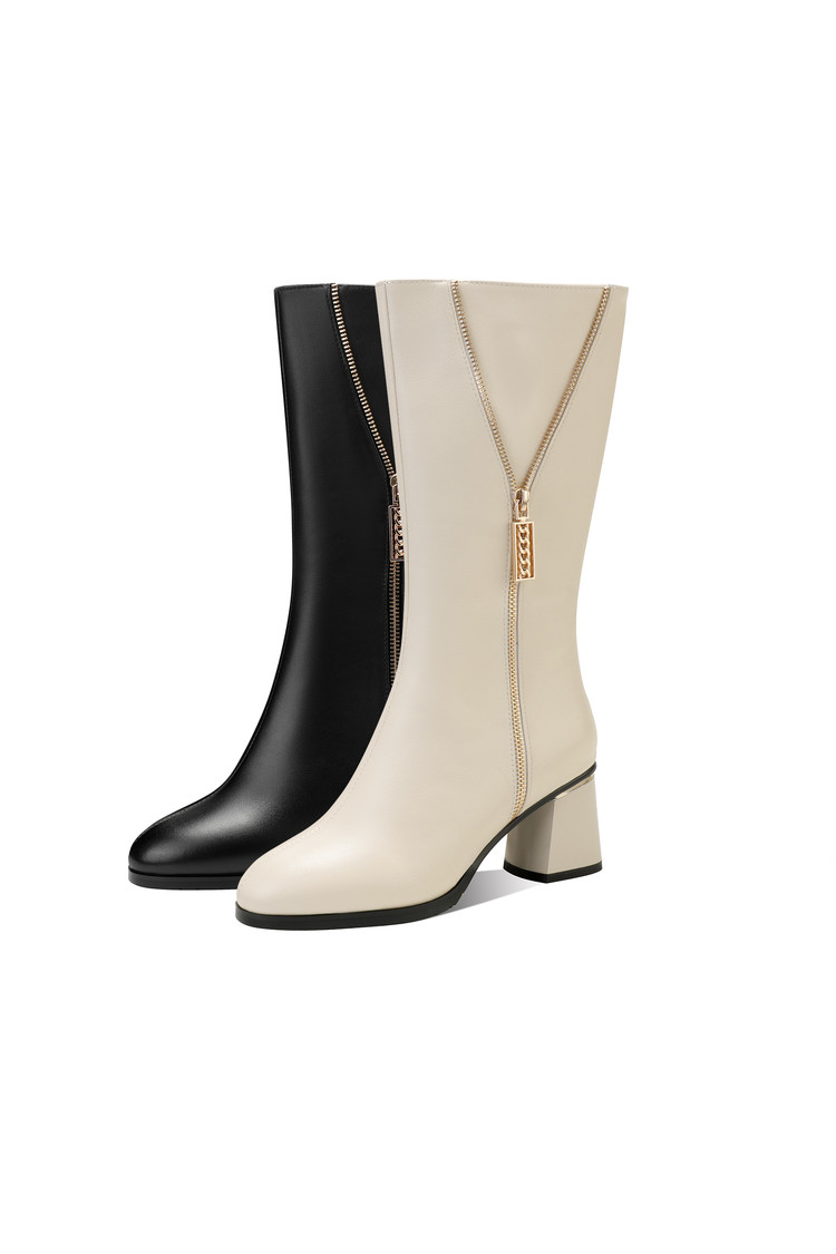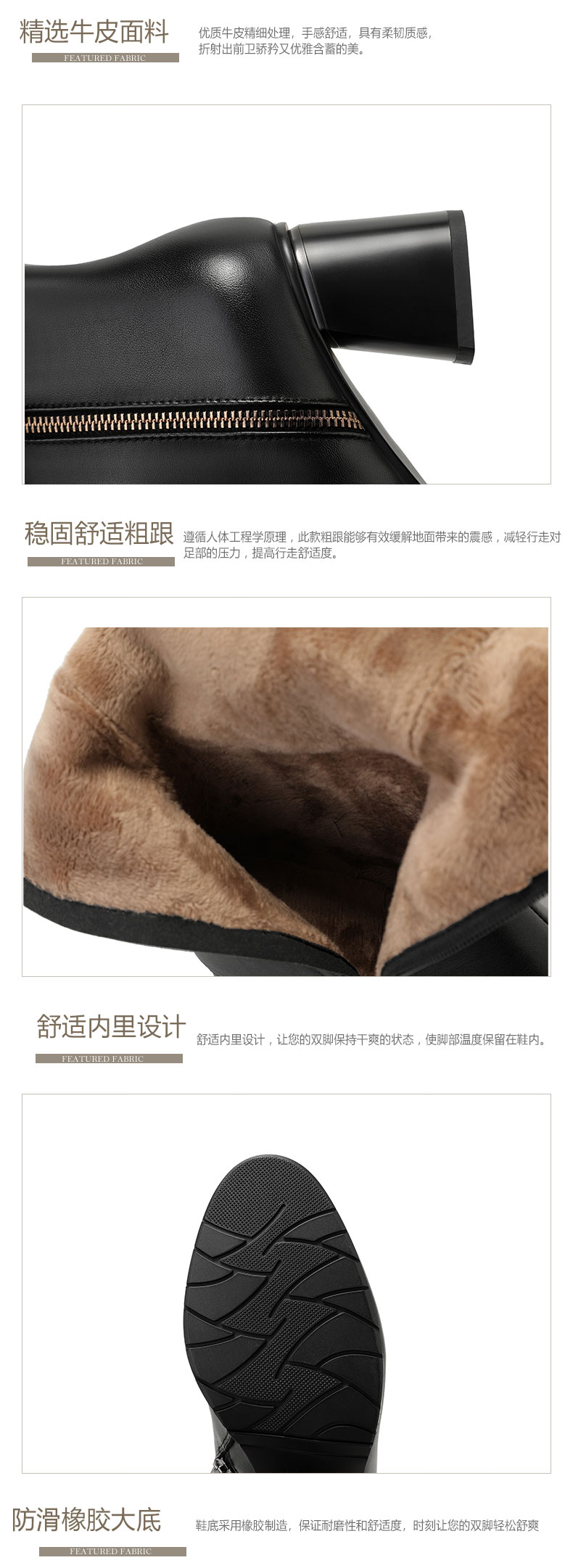 【预售7天】真软皮中筒靴女秋冬新款高跟加绒保暖靴子女时尚百搭洋气粗跟皮鞋JLD&5070