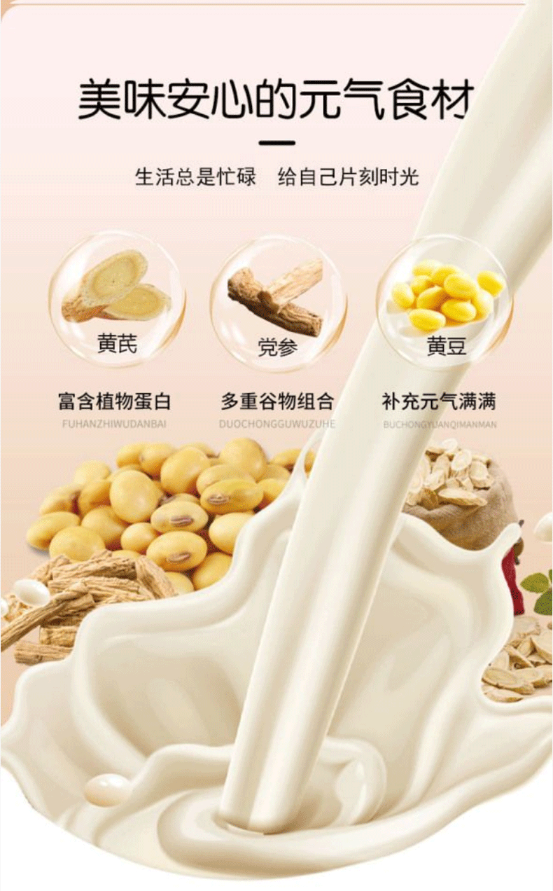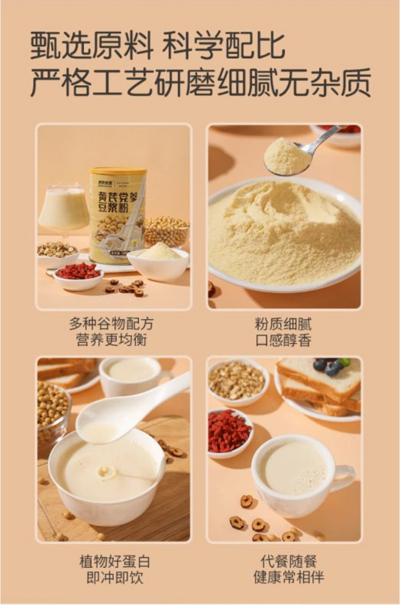 黄芪党参豆浆粉 红枣枸杞学生营养早餐中老年免煮速溶冲饮豆奶粉营养早餐每天一杯.让健康常相伴