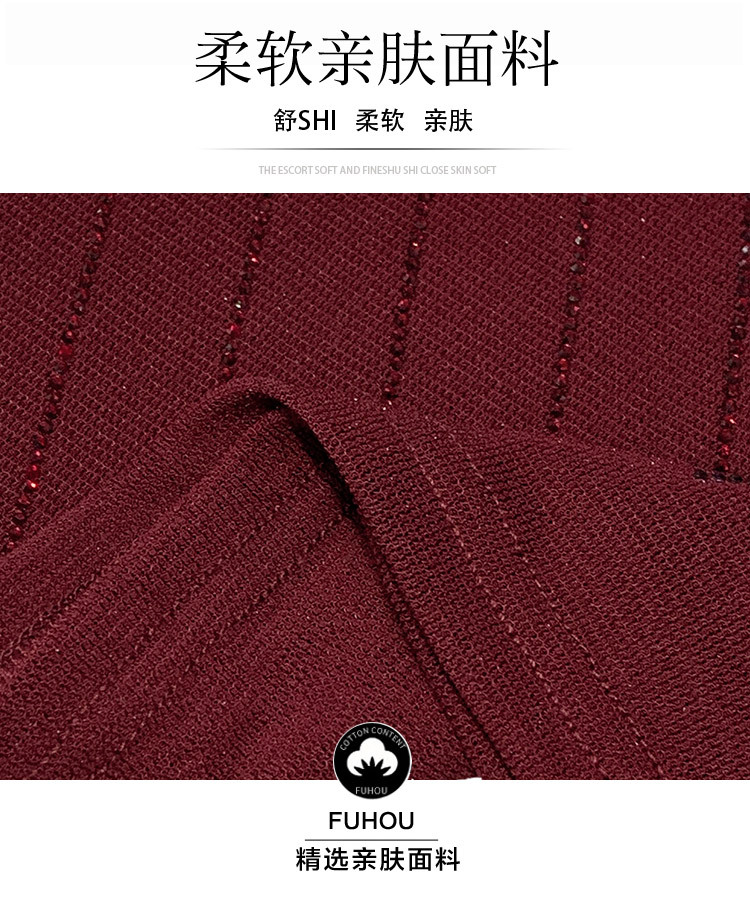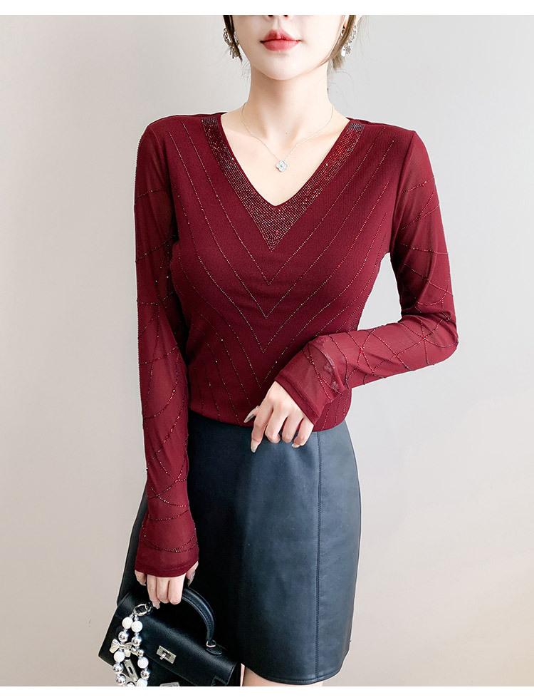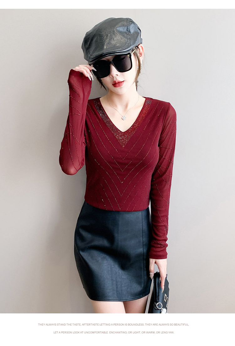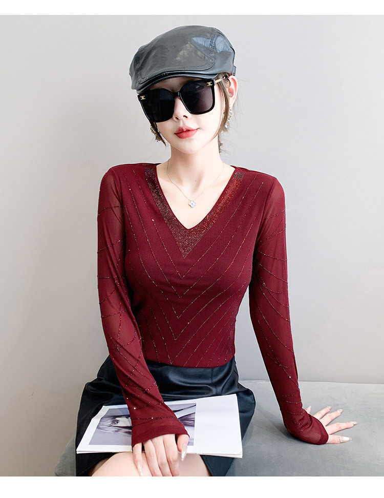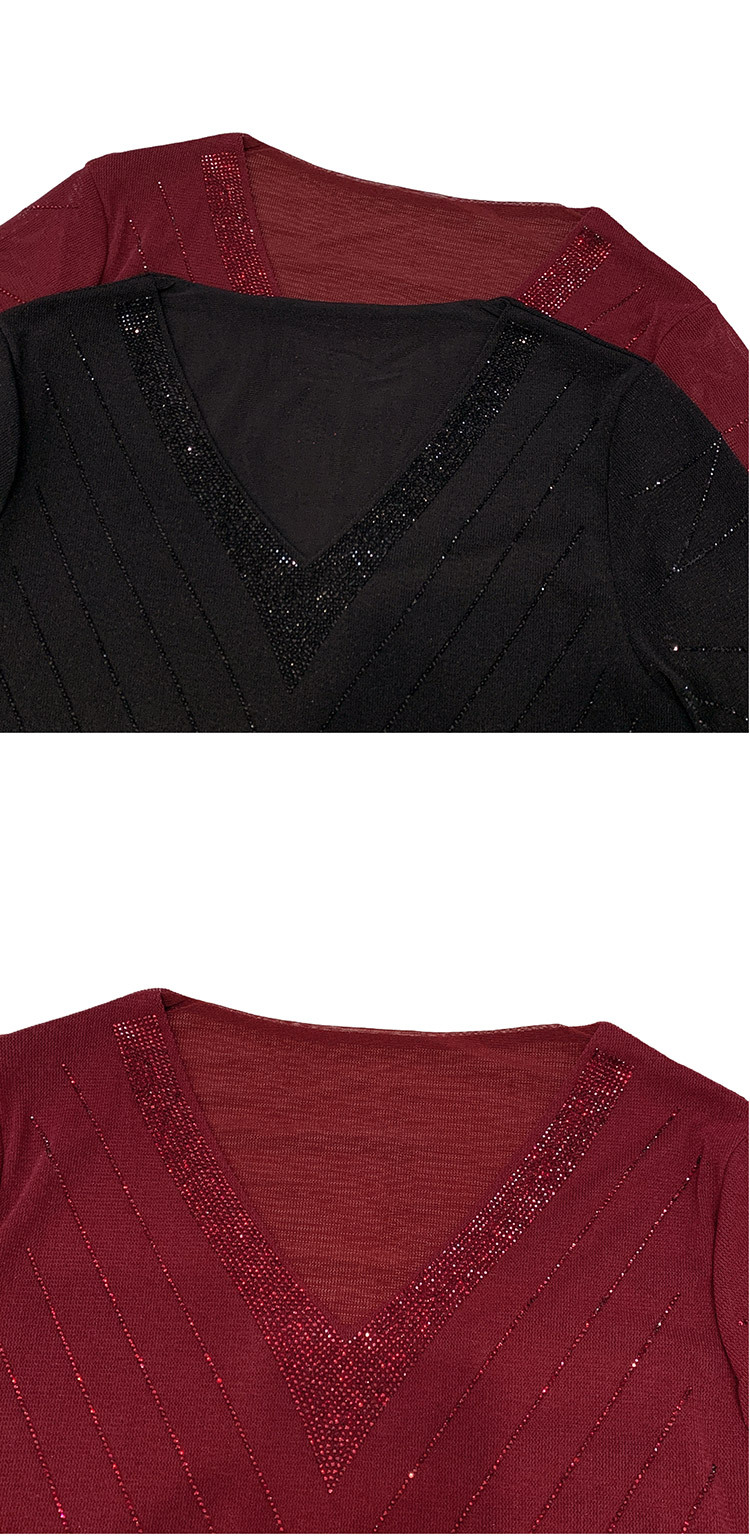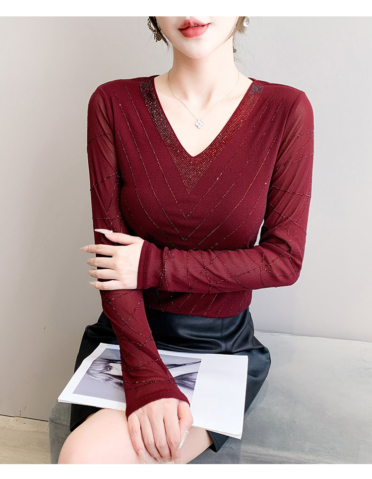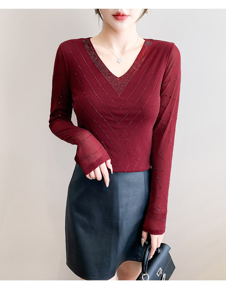 KQL 461H8019性感V领重工艺镶钻T恤上衣修身显瘦打底衫