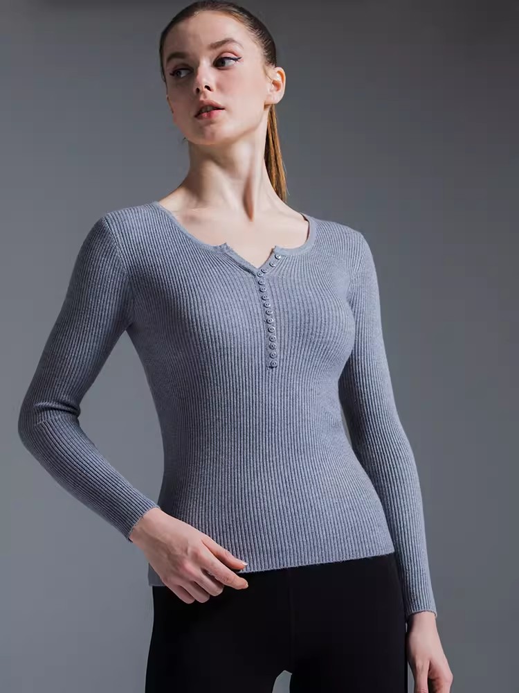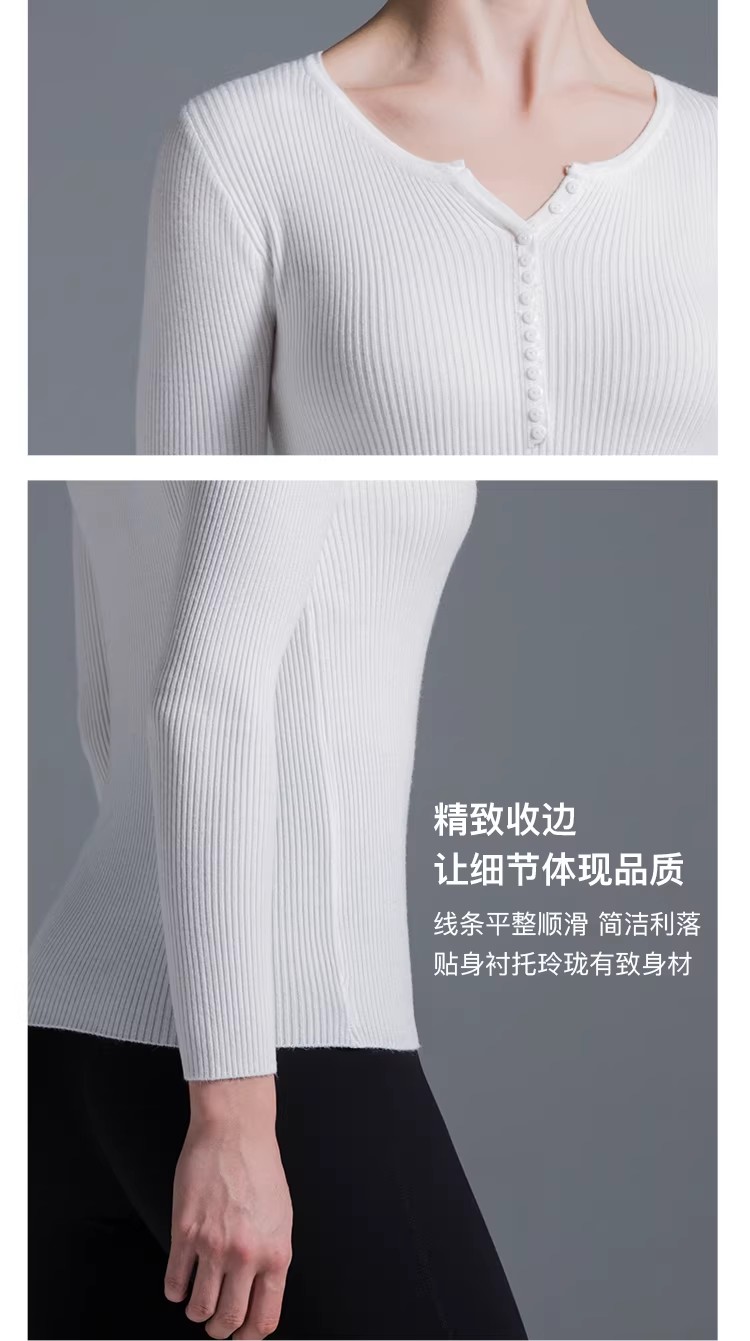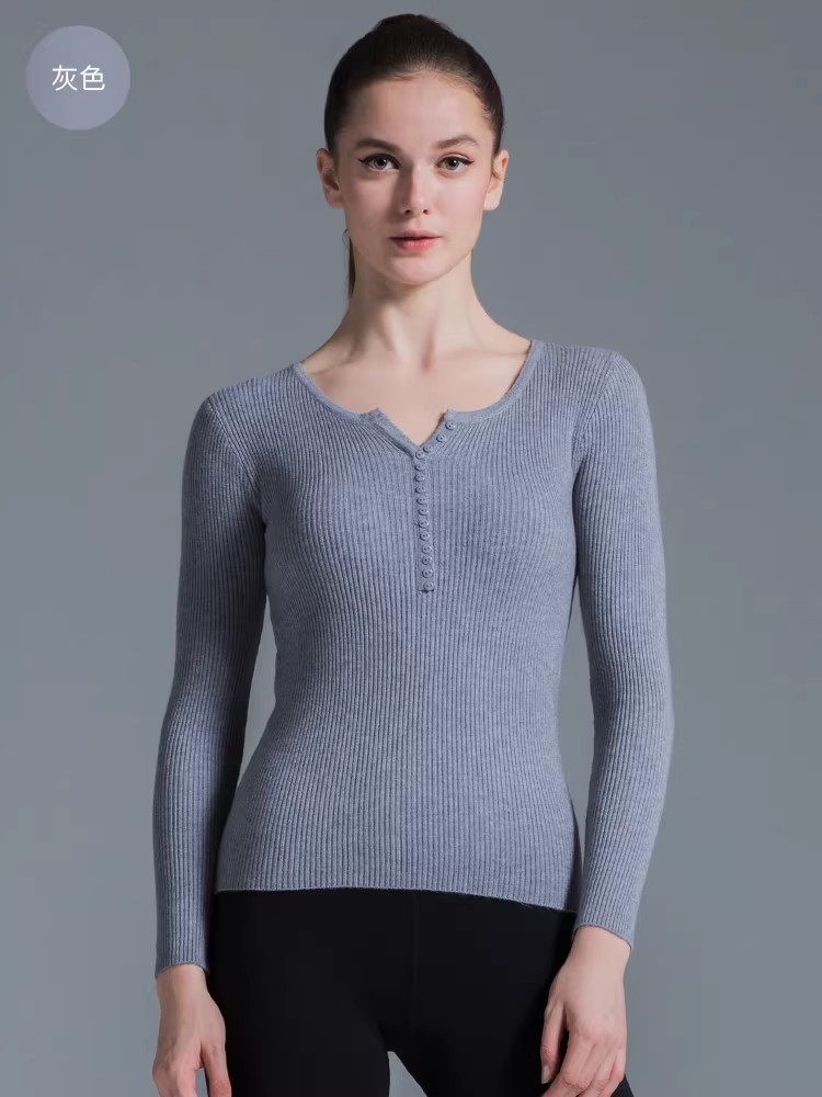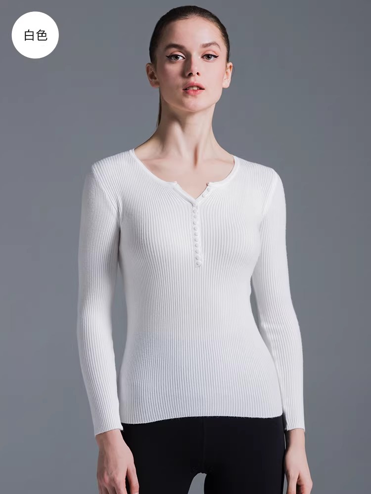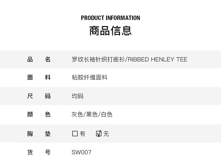RIBBED HENLEY TEE||F罗纹长袖针织打底衫||均码||女款
