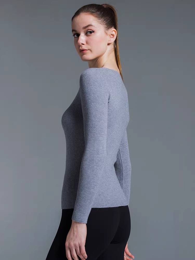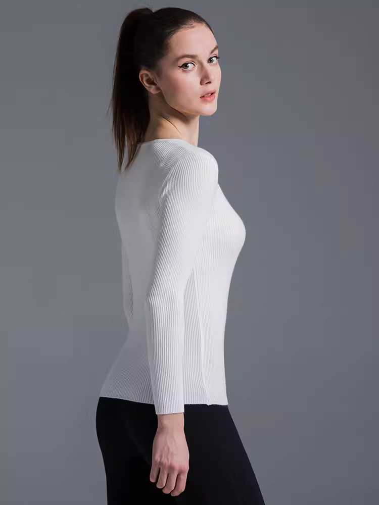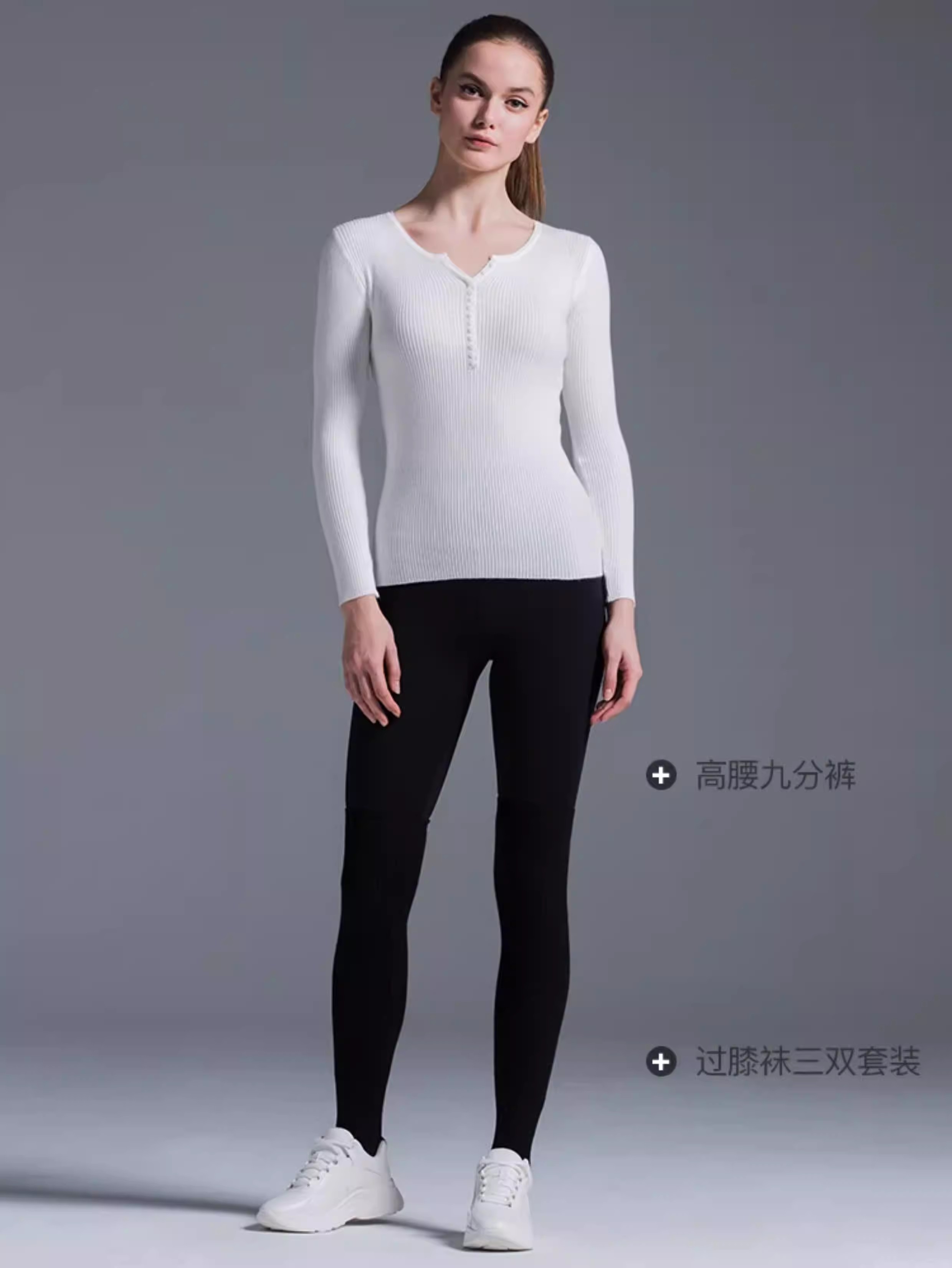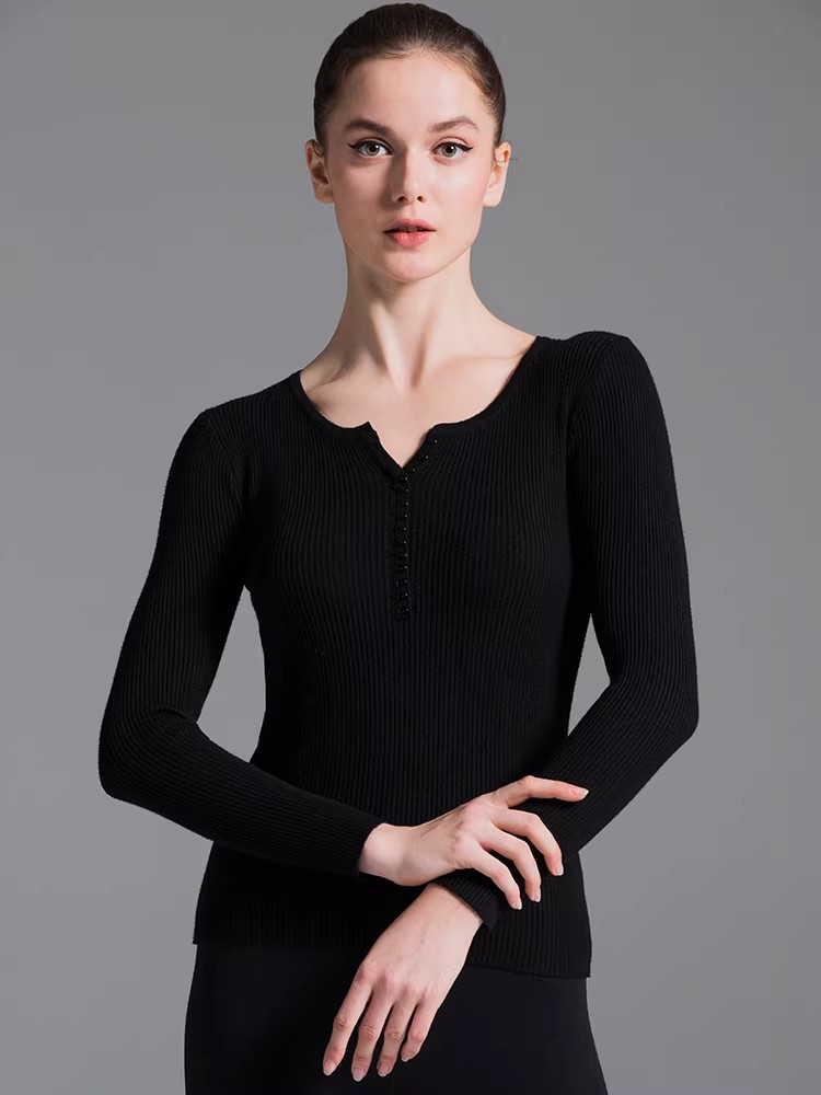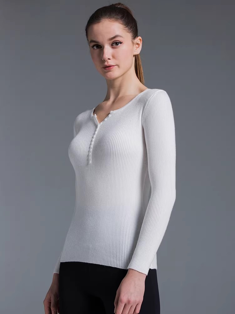 RIBBED HENLEY TEE||F罗纹长袖针织打底衫||均码||女款