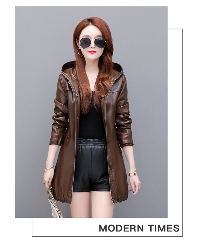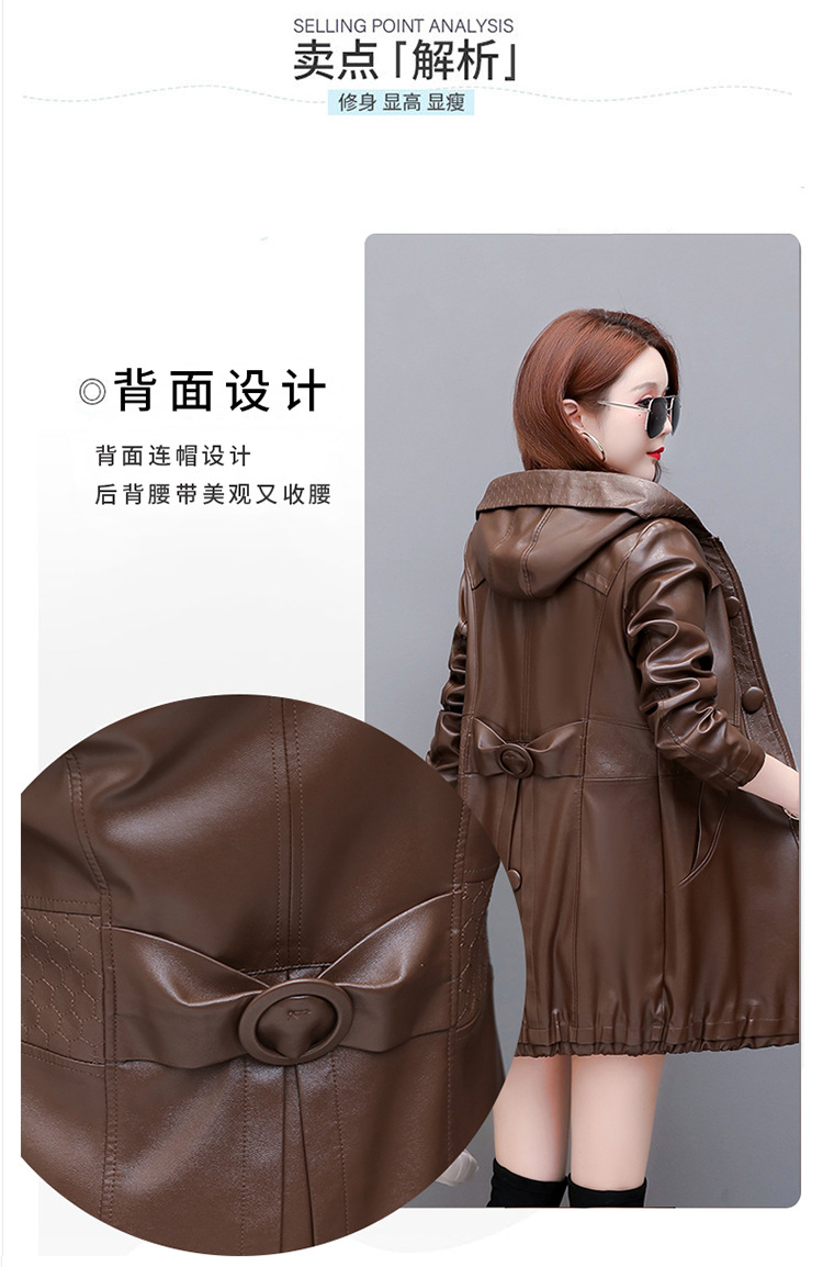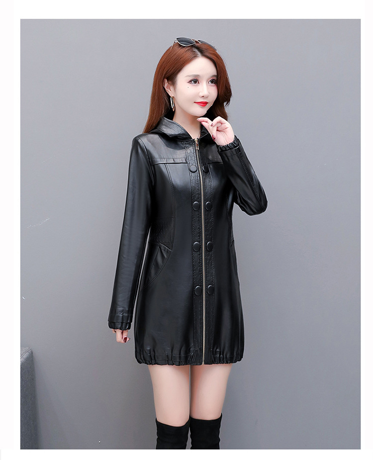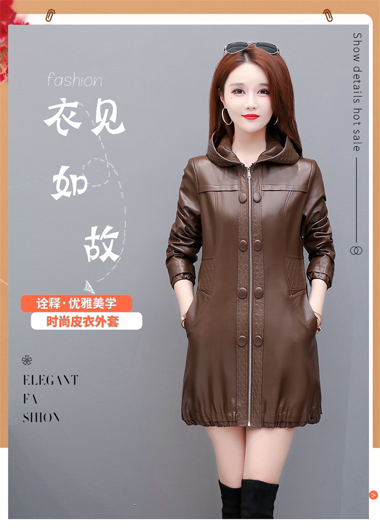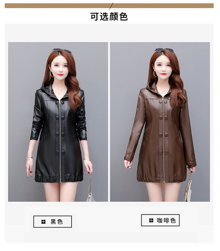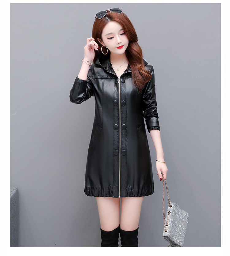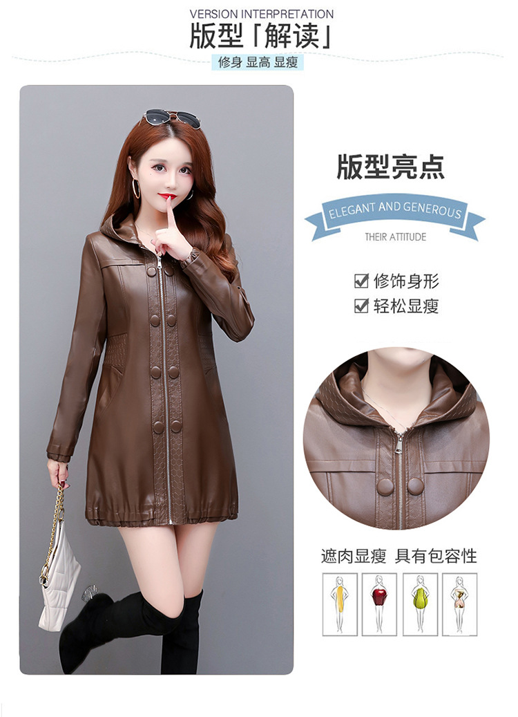 NQS-1383皮衣连帽宽松大码中长款皮衣外套