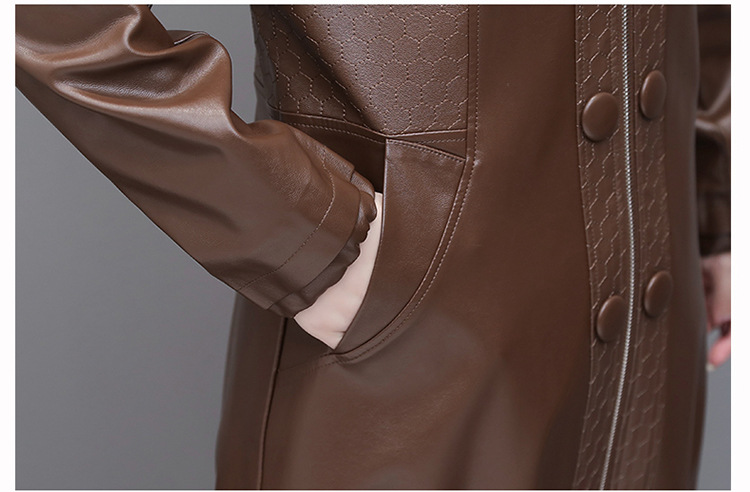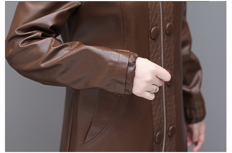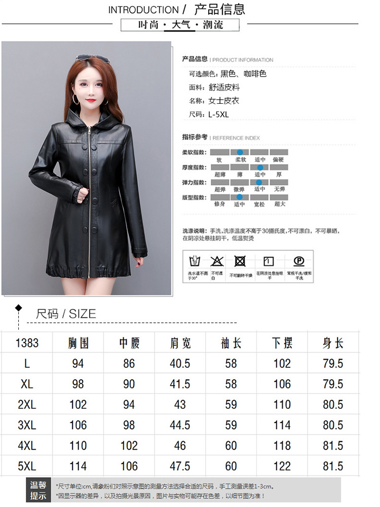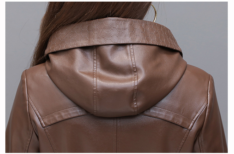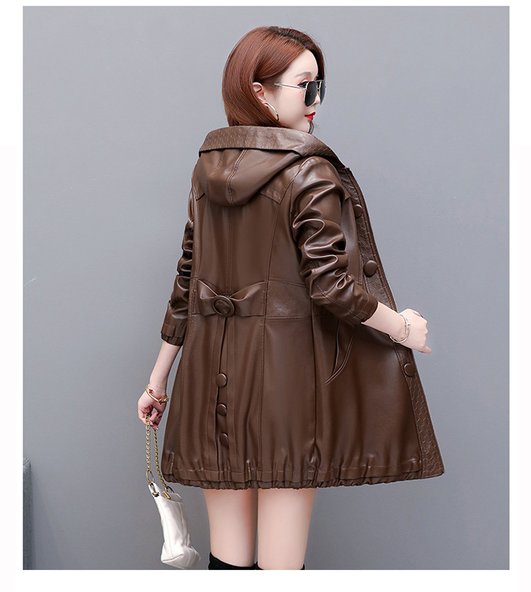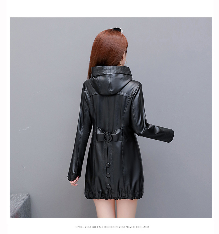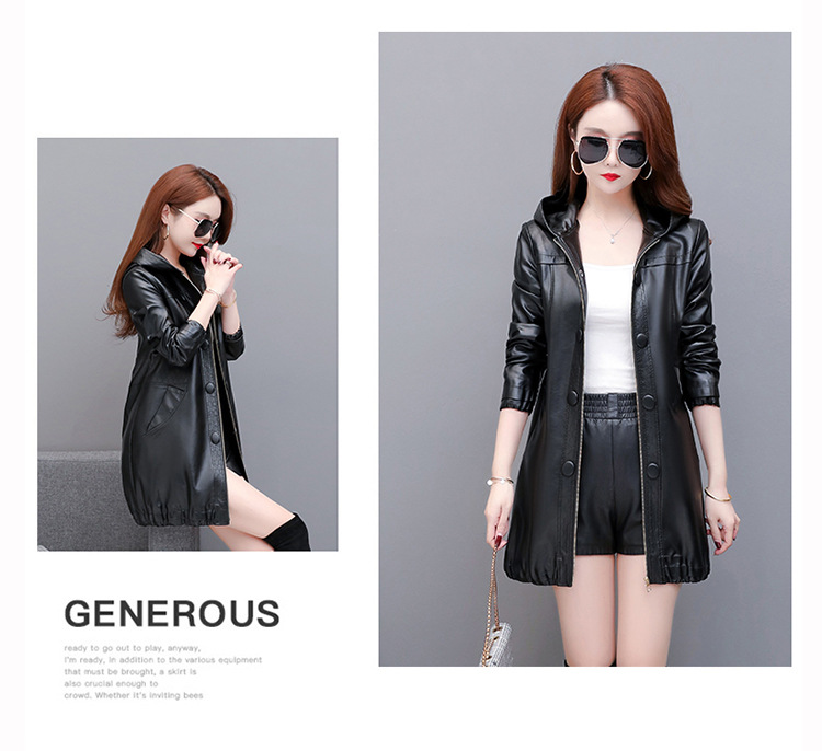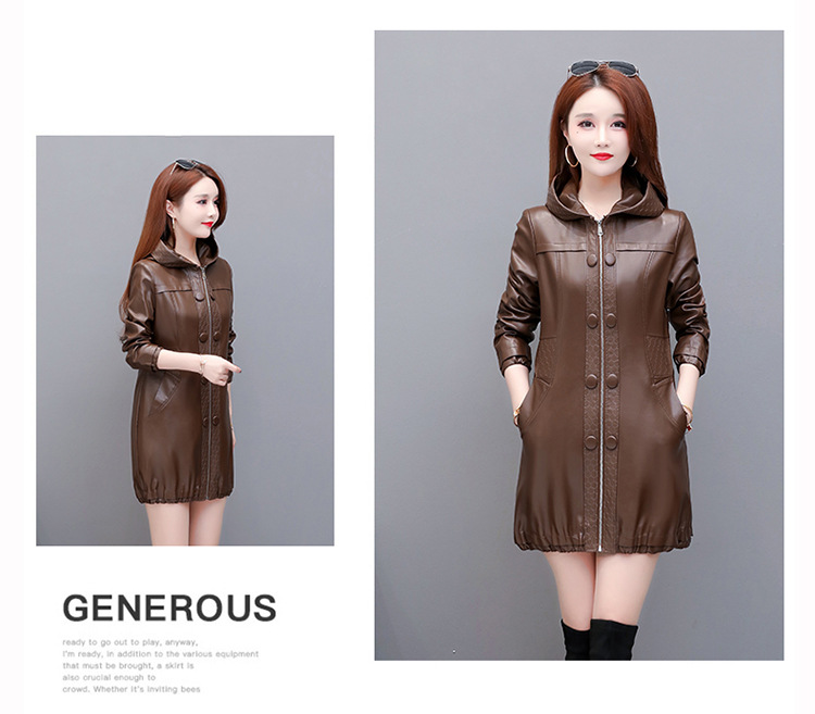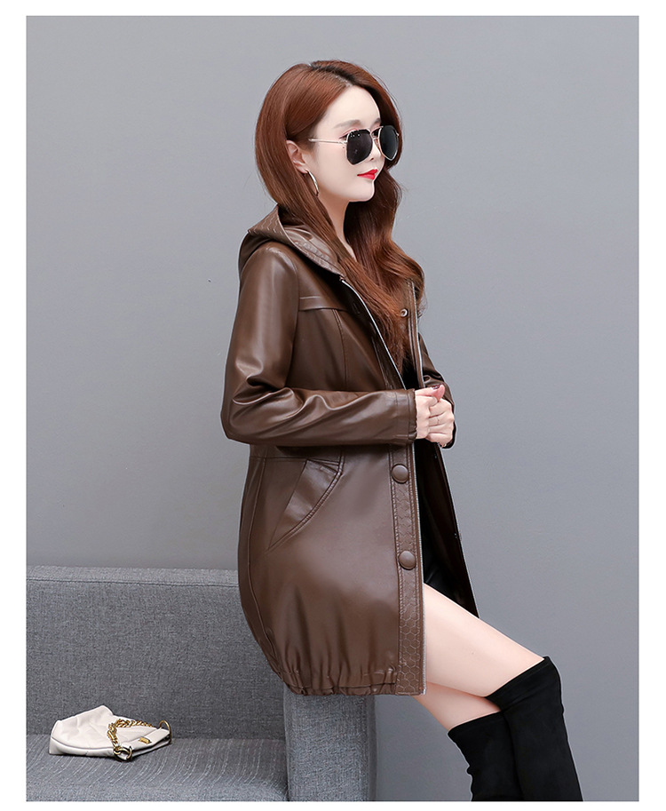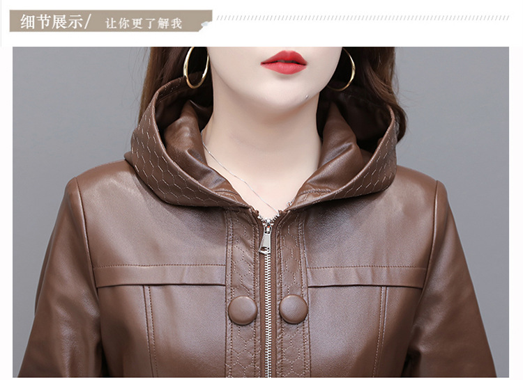 NQS-1383皮衣连帽宽松大码中长款皮衣外套