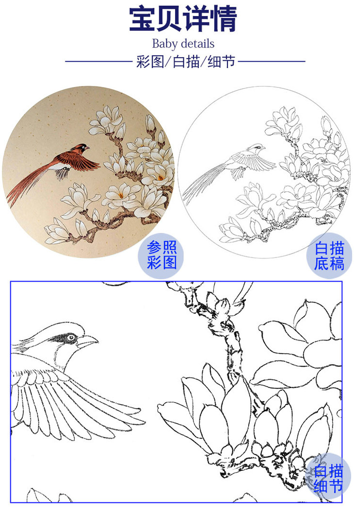 戴青池工笔花鸟白描底稿-玉兰花小品-多种白描尺寸可选-DQ14