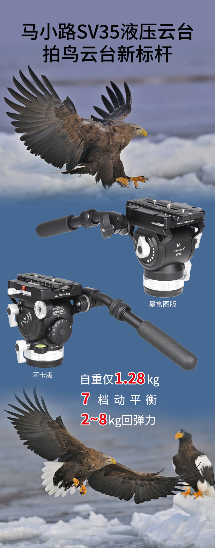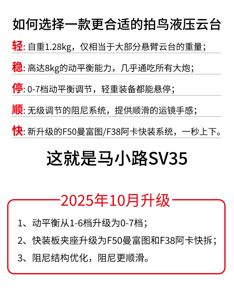 马小路(marsace)SV35、液压云台曼富图/阿卡板可选拍鸟首选,6档 2-8kg动平衡