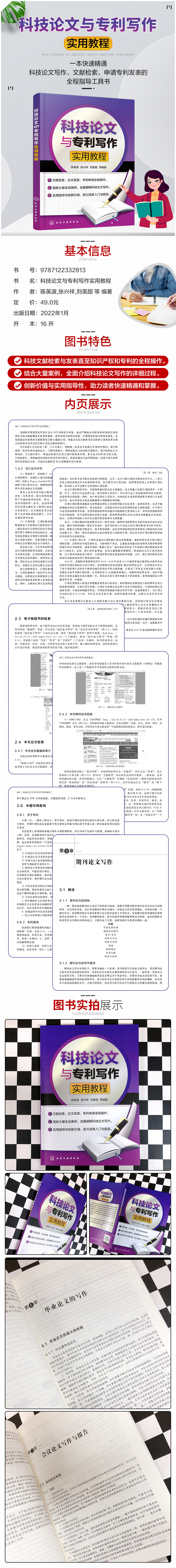 本书以材料科学为例,介绍了中英文科技论文的写作和专利文件写作的全过程。书中主要内容如下:第1章概述了科技论文和专利的基本概念和主要写作特点;第2章详细介绍了中英文科技文献检索与阅读方法,还对国内外专利和产品标准的查询进行了介绍;第3章结合科技论文写作的规范和要求,对中英文期刊论文的写作进行了详细介绍;第4章是为了更好地满足广大读者撰写SCI论文的实际需要,对英文论文写作过程中经常遇到的常见用词和语法等疑难问题进行了归纳和分析,并以实例进行了说明;第5章结合具体实例,阐述了论文投稿与发表的步骤与方法;第6章和第7章还分别介绍了毕业论文和会议论文的写作方法与技巧,以实际经验分享具体操作和注意事项。