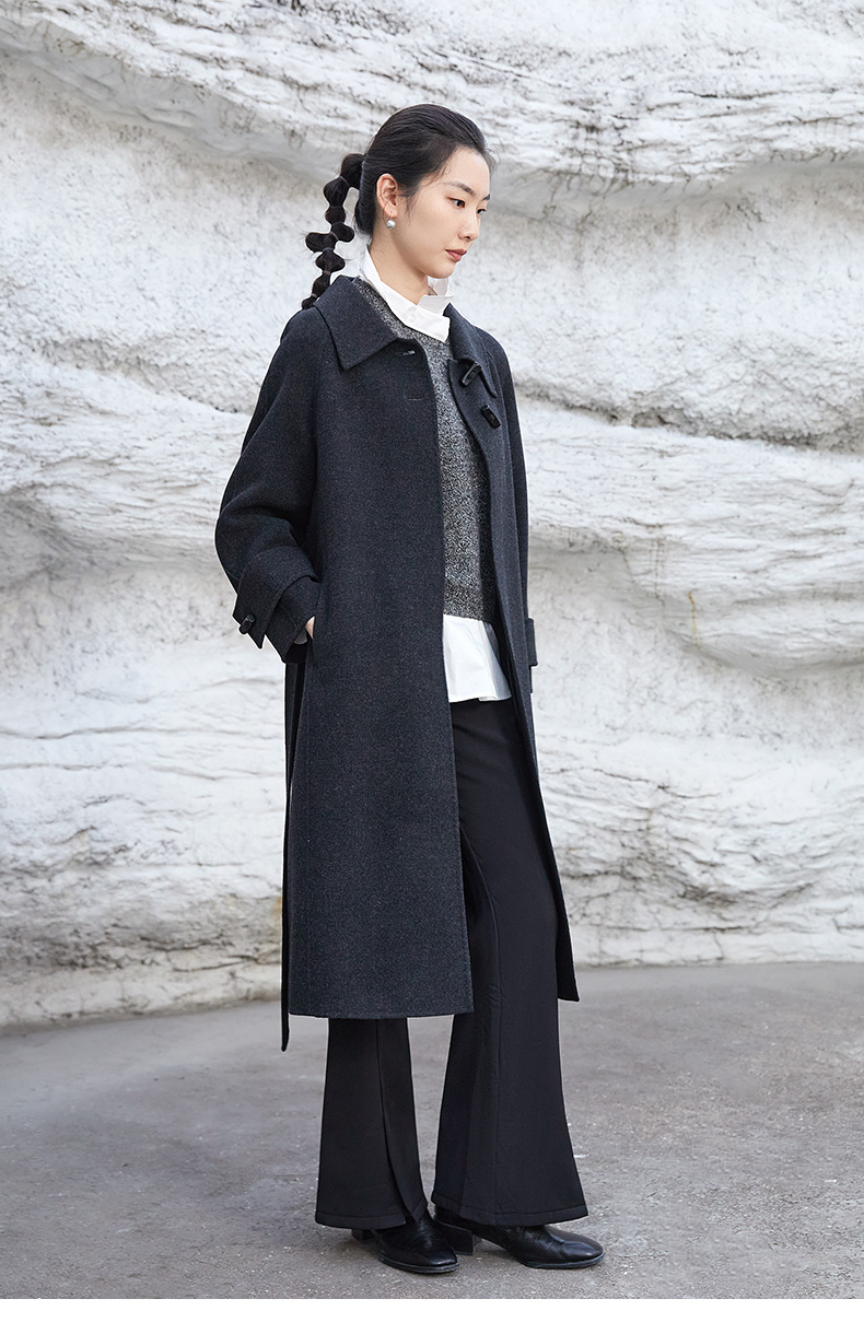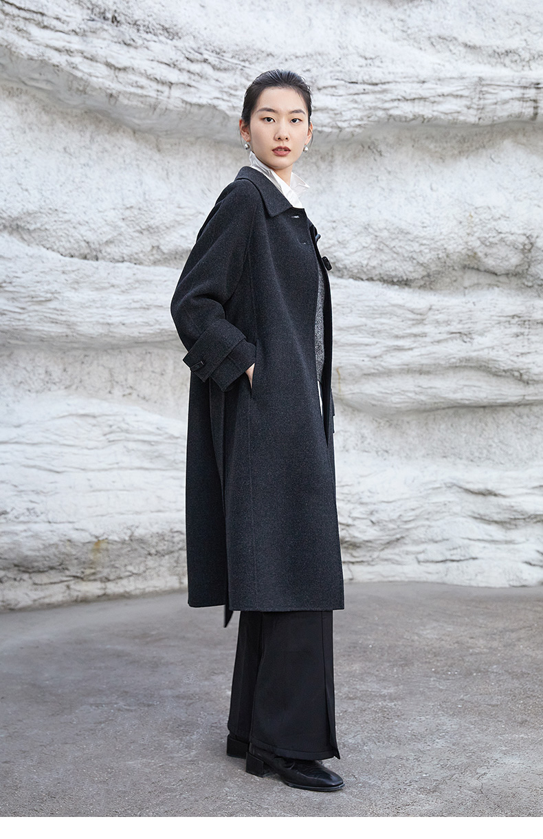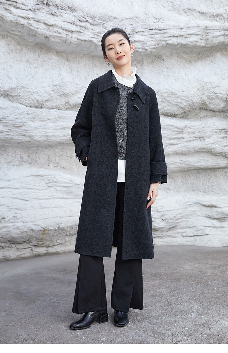 高级感深炭灰长袖 T 恤 春季亨利领设计简约通勤上衣