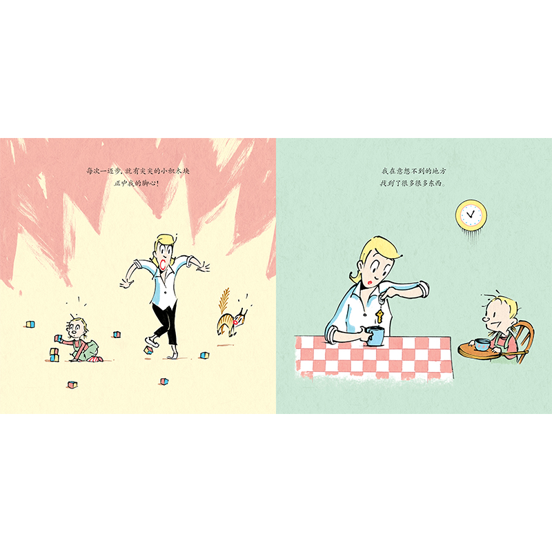 在你到来之前,我完全没想到……我们的房子会这么乱,这么吵!我也没想到……”一位妈妈向她蹒跚学步的孩子讲述着生活中发生的诸多变化:房子变得杂乱和吵闹,洗澡时浴室就像刮过一场台风,家里的东西总会被撞倒,还多了无数个毛绒玩具,时不时就会有“黏糊糊”的烂摊子出现,也会有很多毫无准备的玩耍嬉闹……但是,爱咯咯笑也爱捣乱的宝贝让整个家被玩具和冒险填满,也让整个家充满了快乐和惊喜。