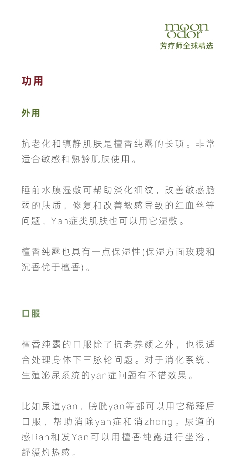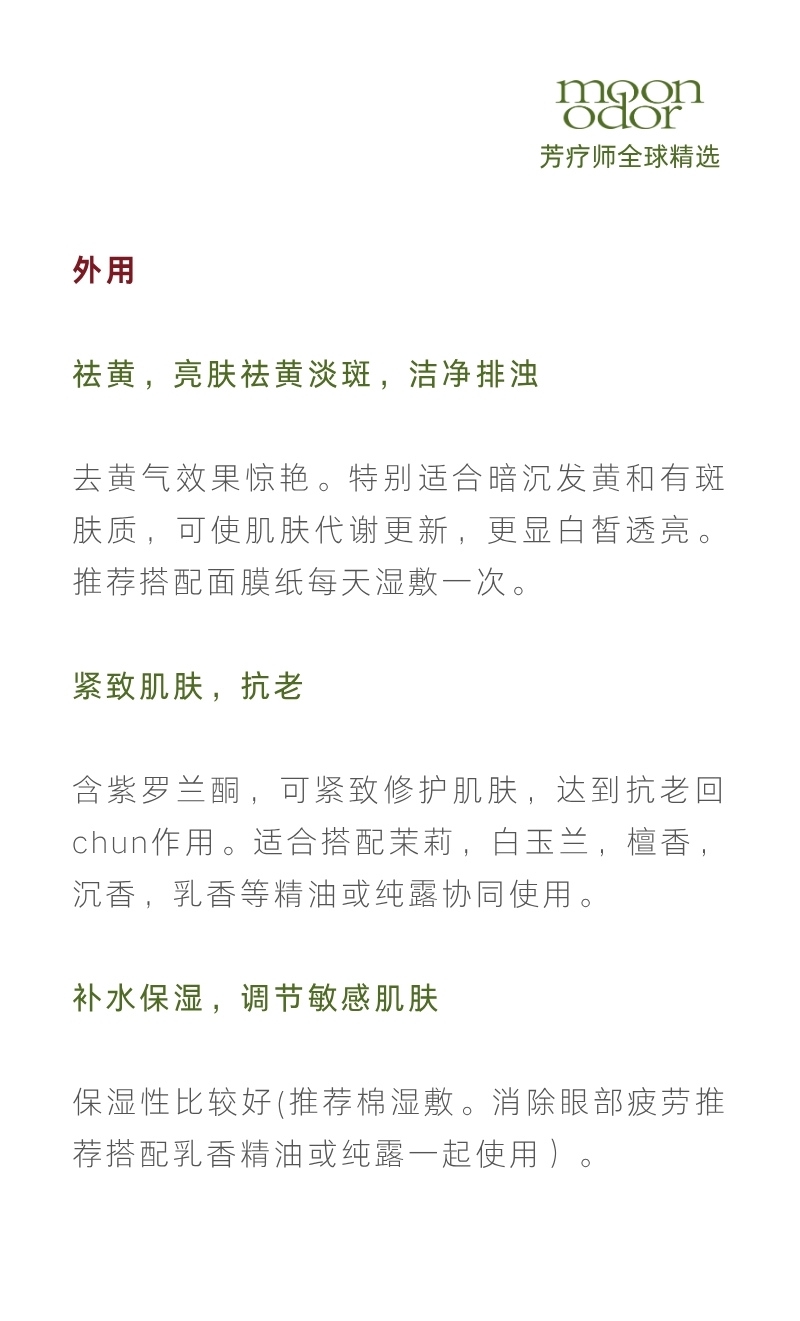 纯露:澳檀、阿曼绿乳香、茶树、桂花、九品香水莲、苦橙花、沉香、紫苏、矢车菊【芳香026】