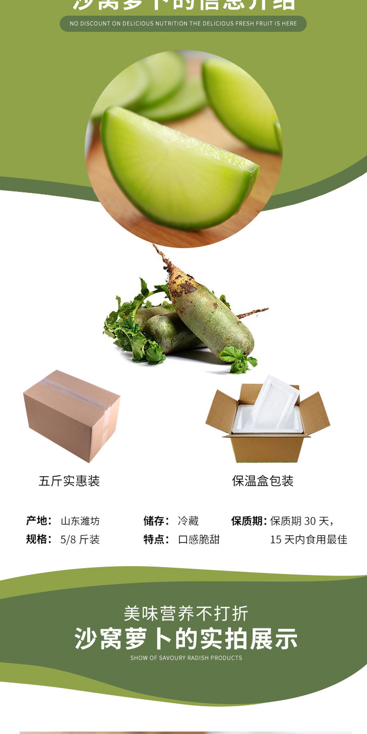 沙窝萝卜 潍坊现拔现发 新鲜绿色蔬菜脆甜青萝卜 正宗水果萝卜5斤装