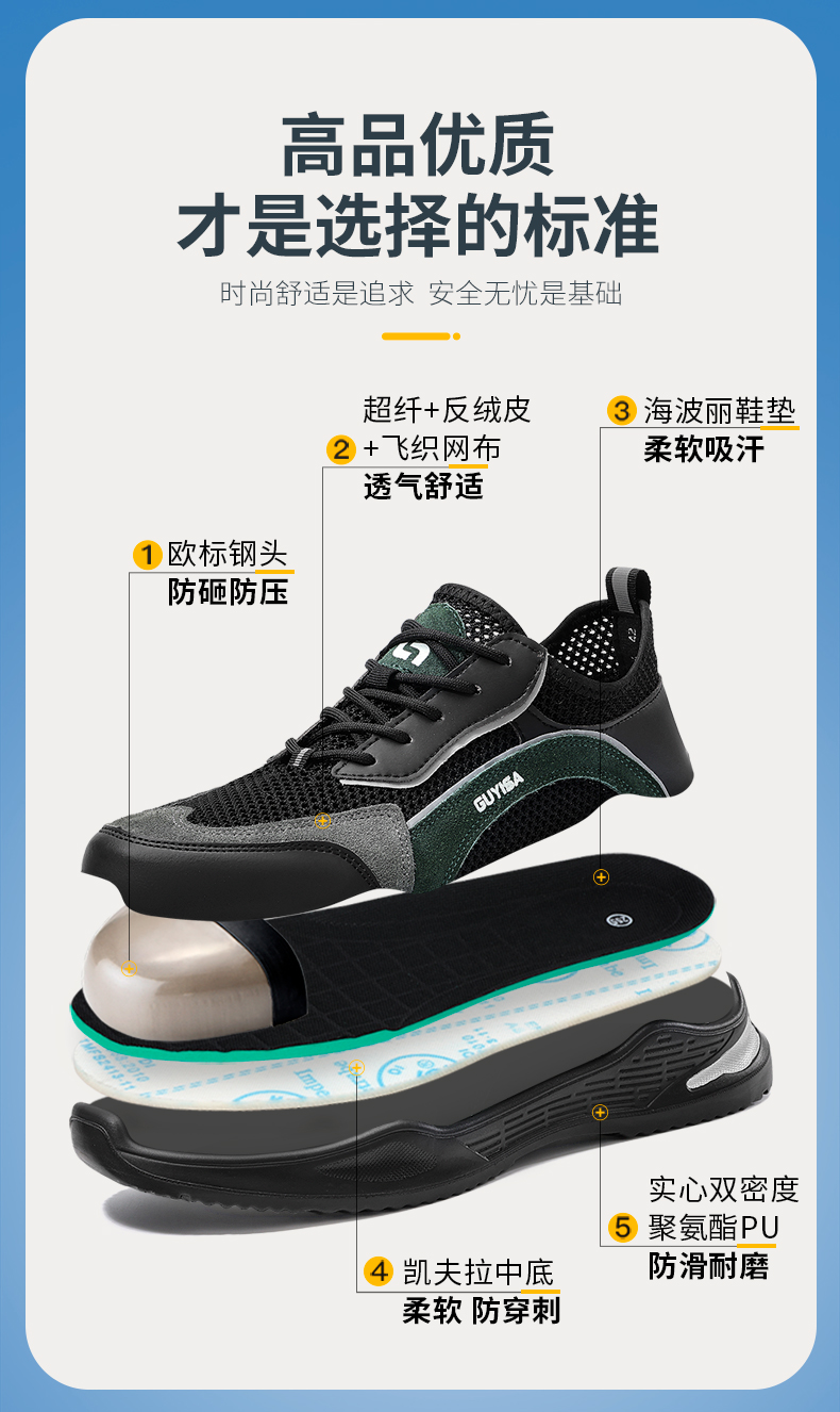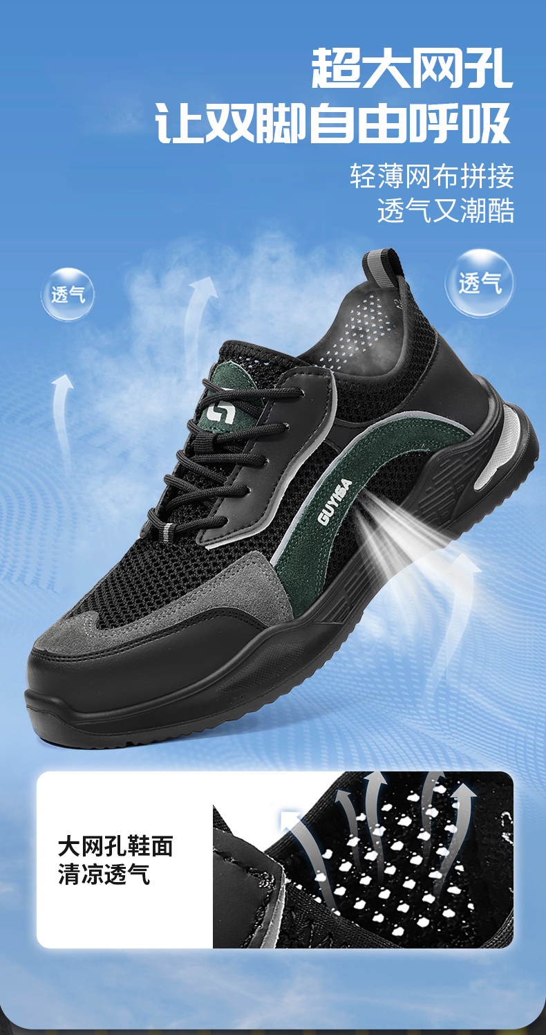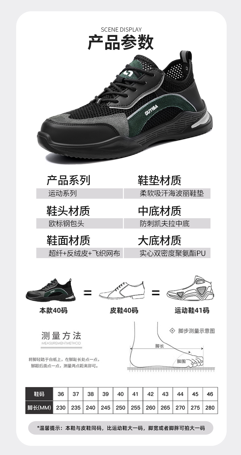 劳保鞋男防砸防刺安全鞋夏季透气钢包头实心底耐磨功能鞋