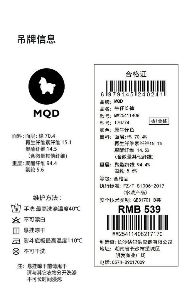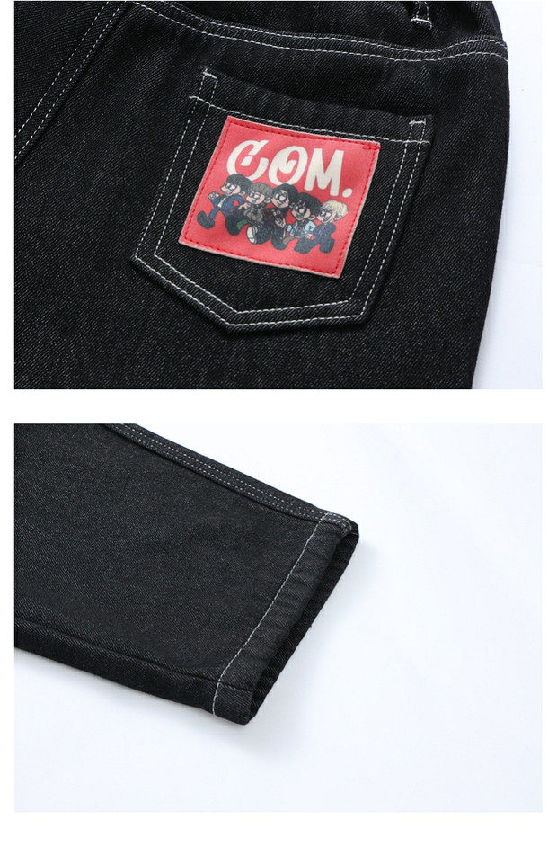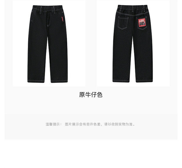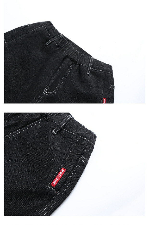 【MQD】童装男大童冬季新款儿童学院加绒加厚防褪色保暖直筒牛仔裤