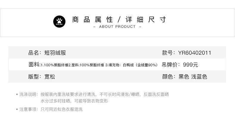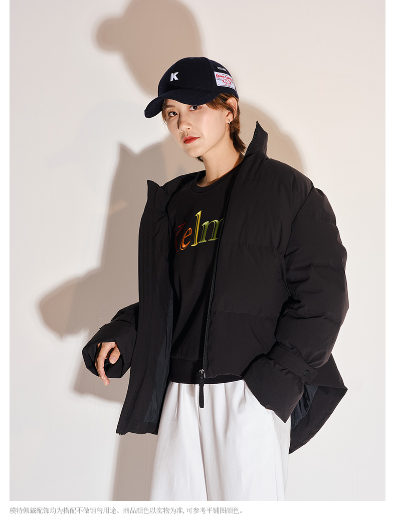 卡尔美秋冬新款面包服羽绒服女短款前短后长羽绒外套YR604011