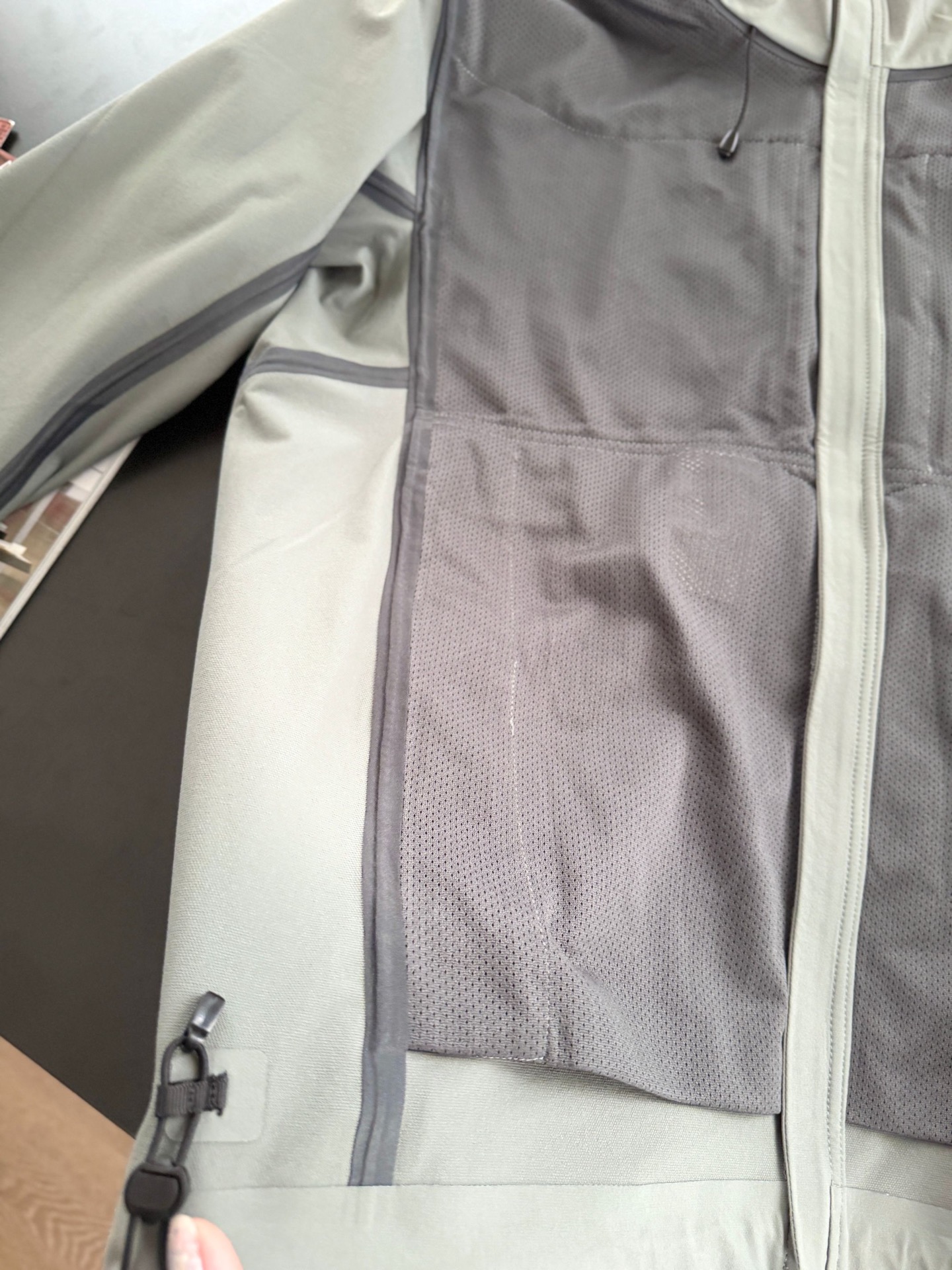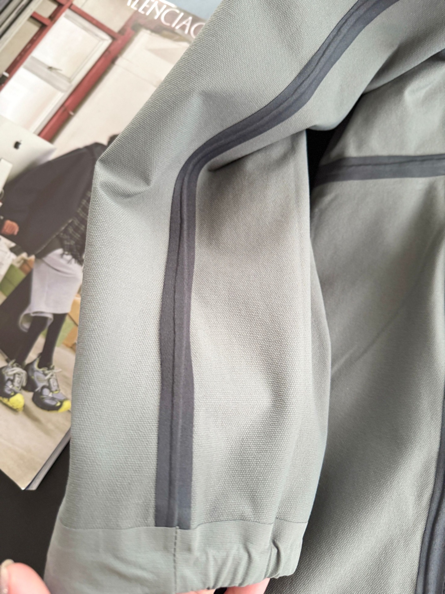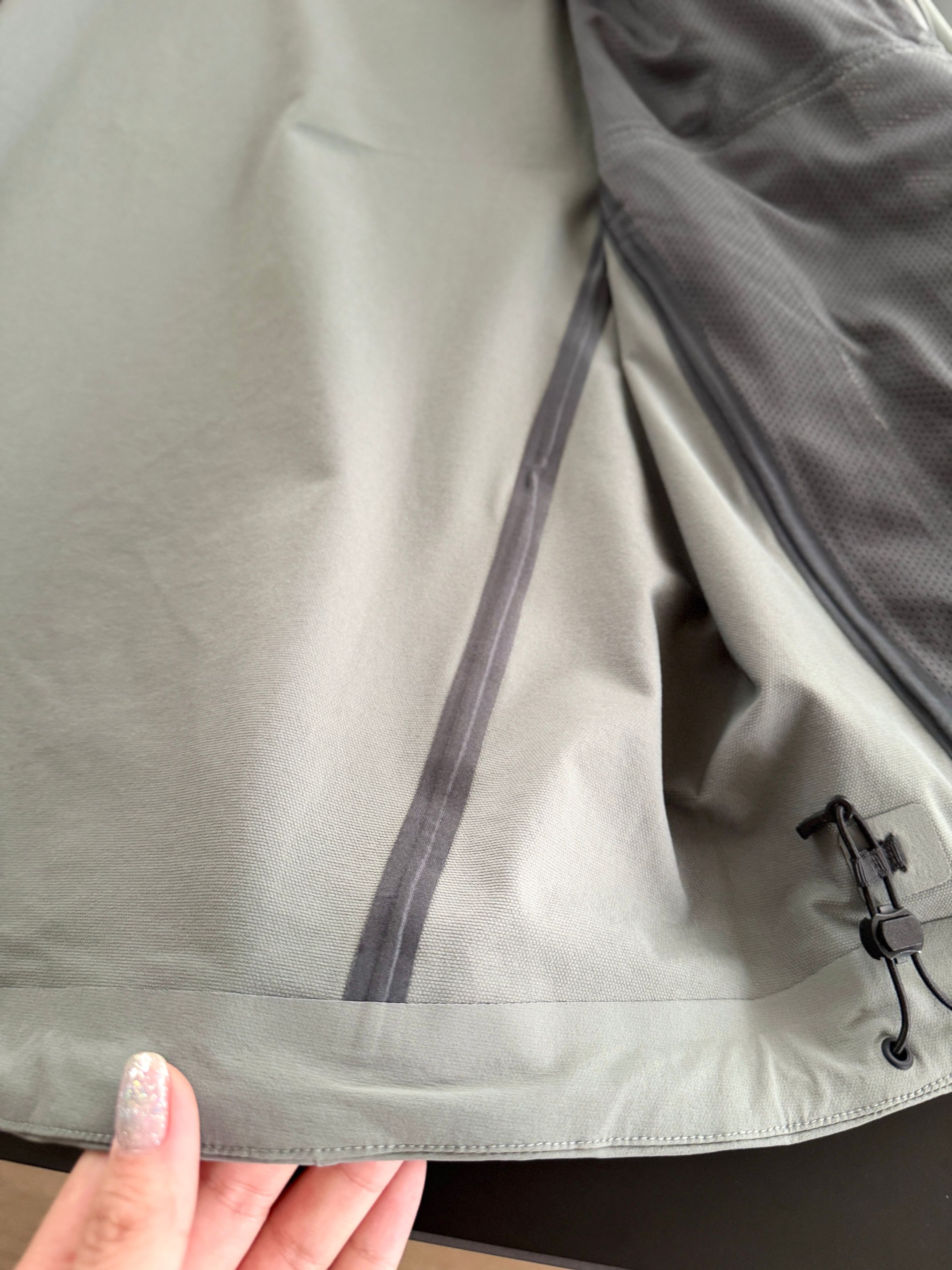 全身压胶工艺复杂❗腋下多处拼接,以及胸前及侧缝立体拼裁,内里全部固定12MM压条!平整且防风防渗水。帽檐压胶加强支撑度,半松紧马蹄袖口和下摆全部压胶保持平整度,压胶密合无缝隙~