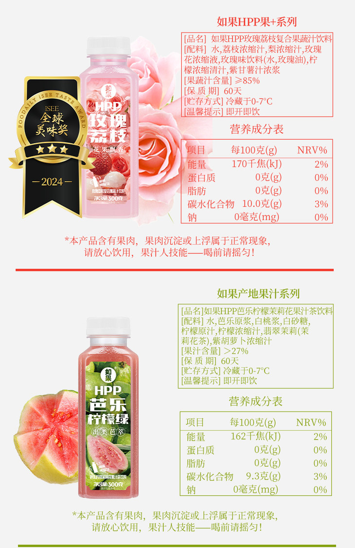 【买8赠2】 如果八鲜果海组合升级装 HPP果汁冷压锁鲜 多口味 到手10瓶