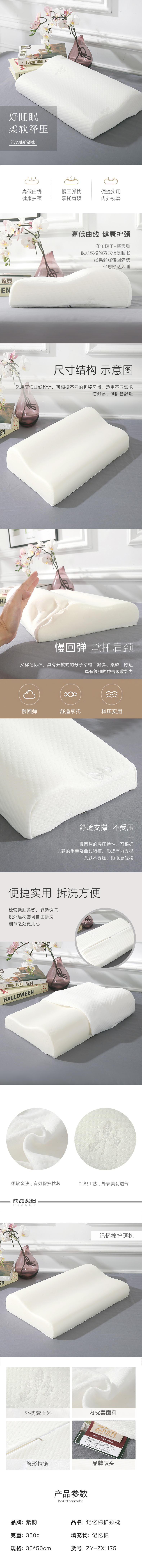 【紫韵家纺】记忆棉护颈枕2019红色枕芯方型盒