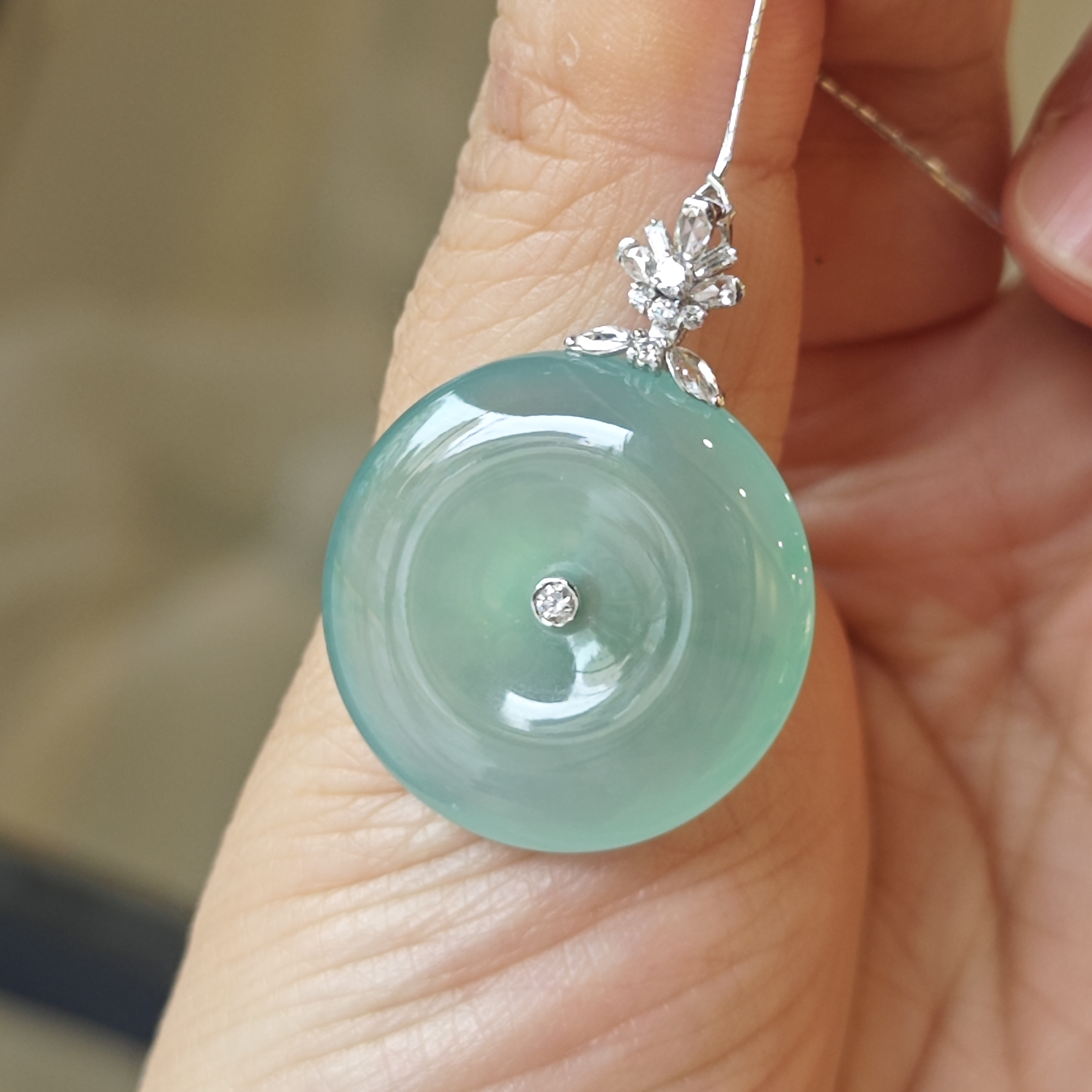 冰晴绿镶钻翡翠玉扣