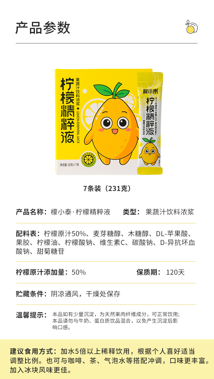 檬小泰柠檬精萃液7条装33g*7条/盒
