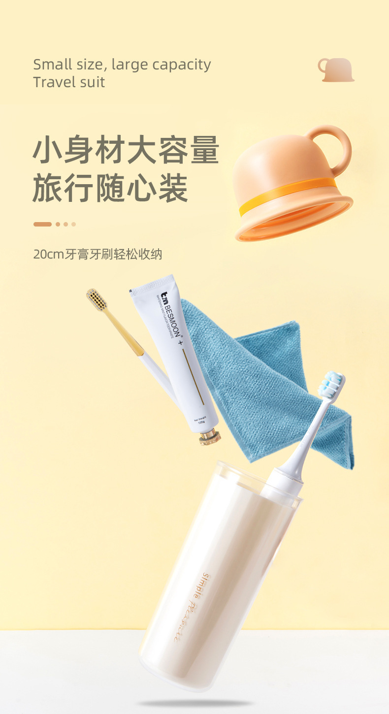 (春艺)三合一旅行漱口杯家庭套装便携式洗漱杯-M仓