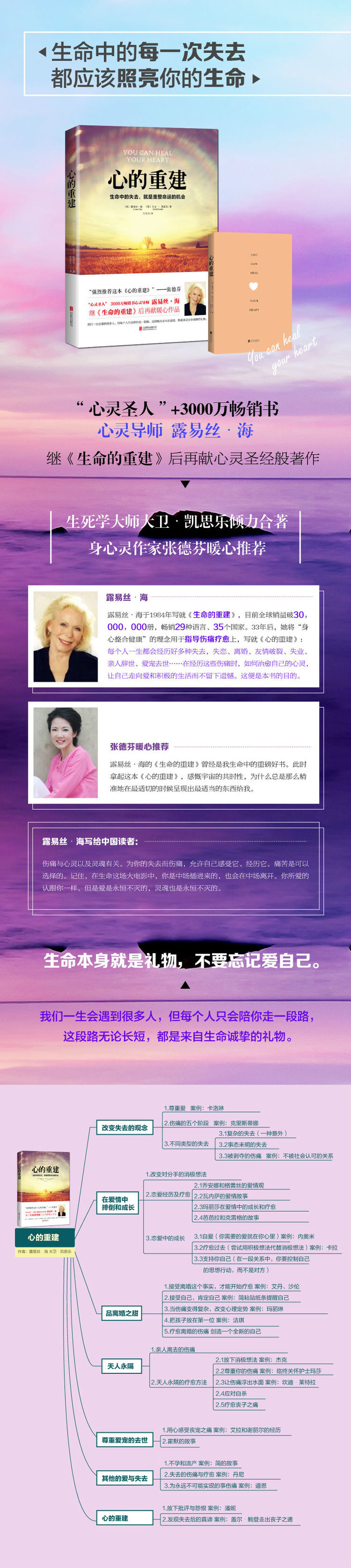 就像露易丝·海和大卫·凯思乐所说的积极肯定语,所有遇到的人和事都会带领我变成一个更好的自己。这是一本很容易读的书,每一章节都划分成几个小的部分,语言充满了温柔,充分表示了对当事人的尊重。