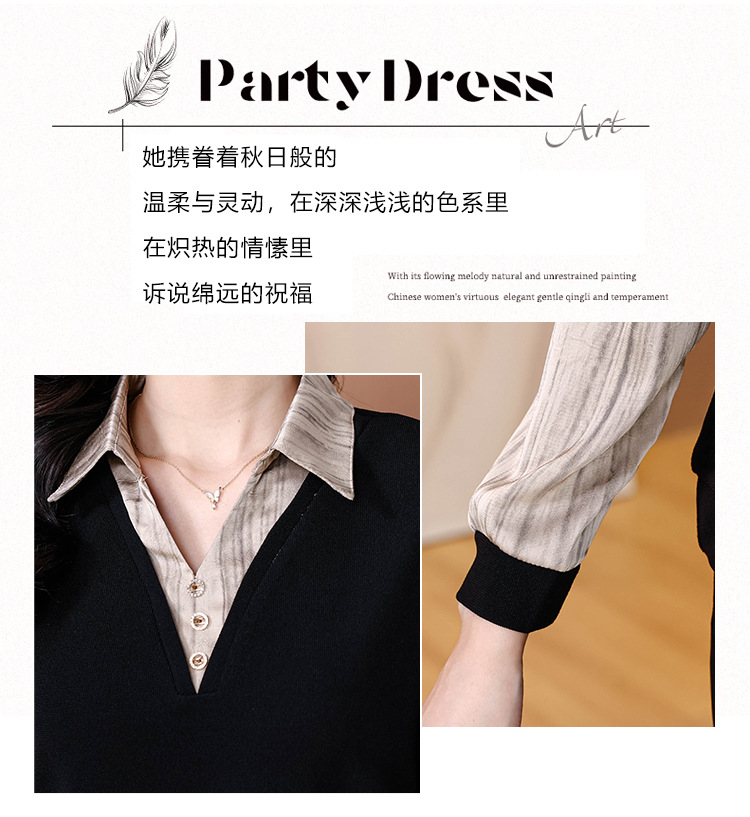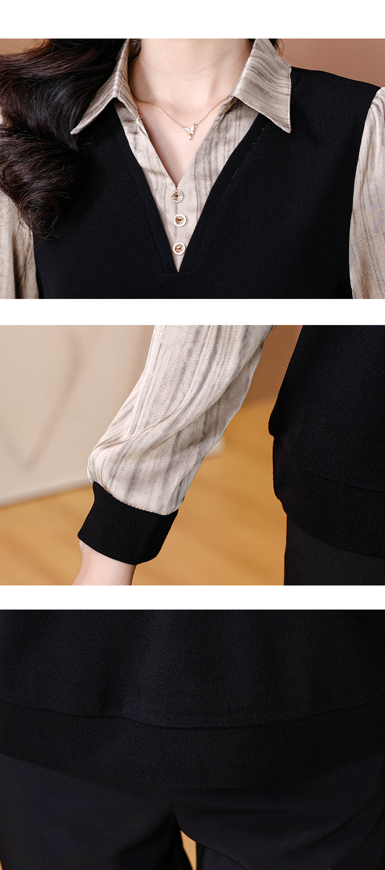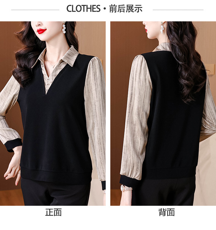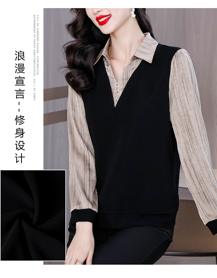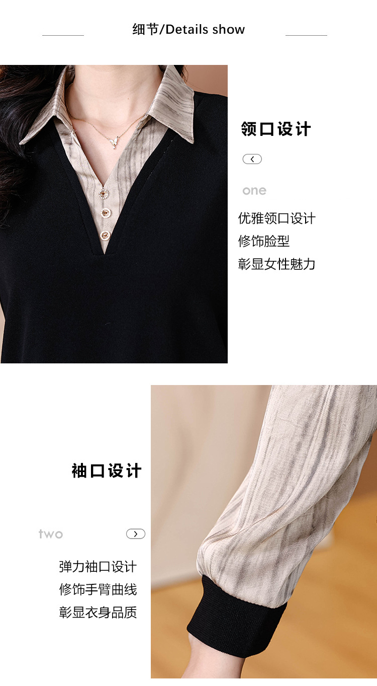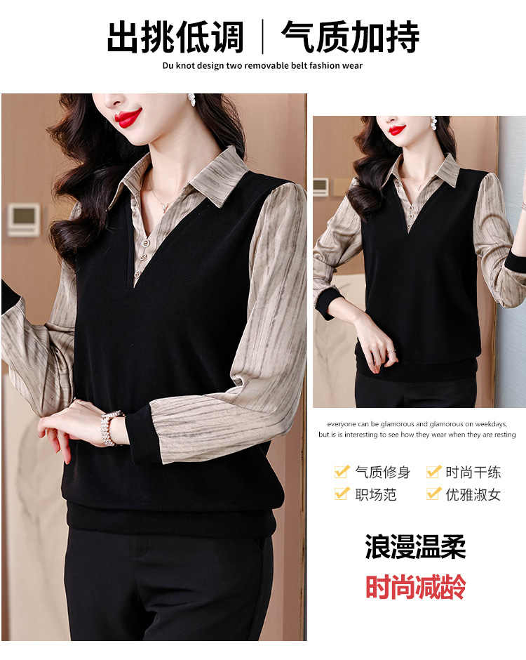KQL E333M3113针织衫气质妈妈减龄polo领衬衫拼接假两件上衣