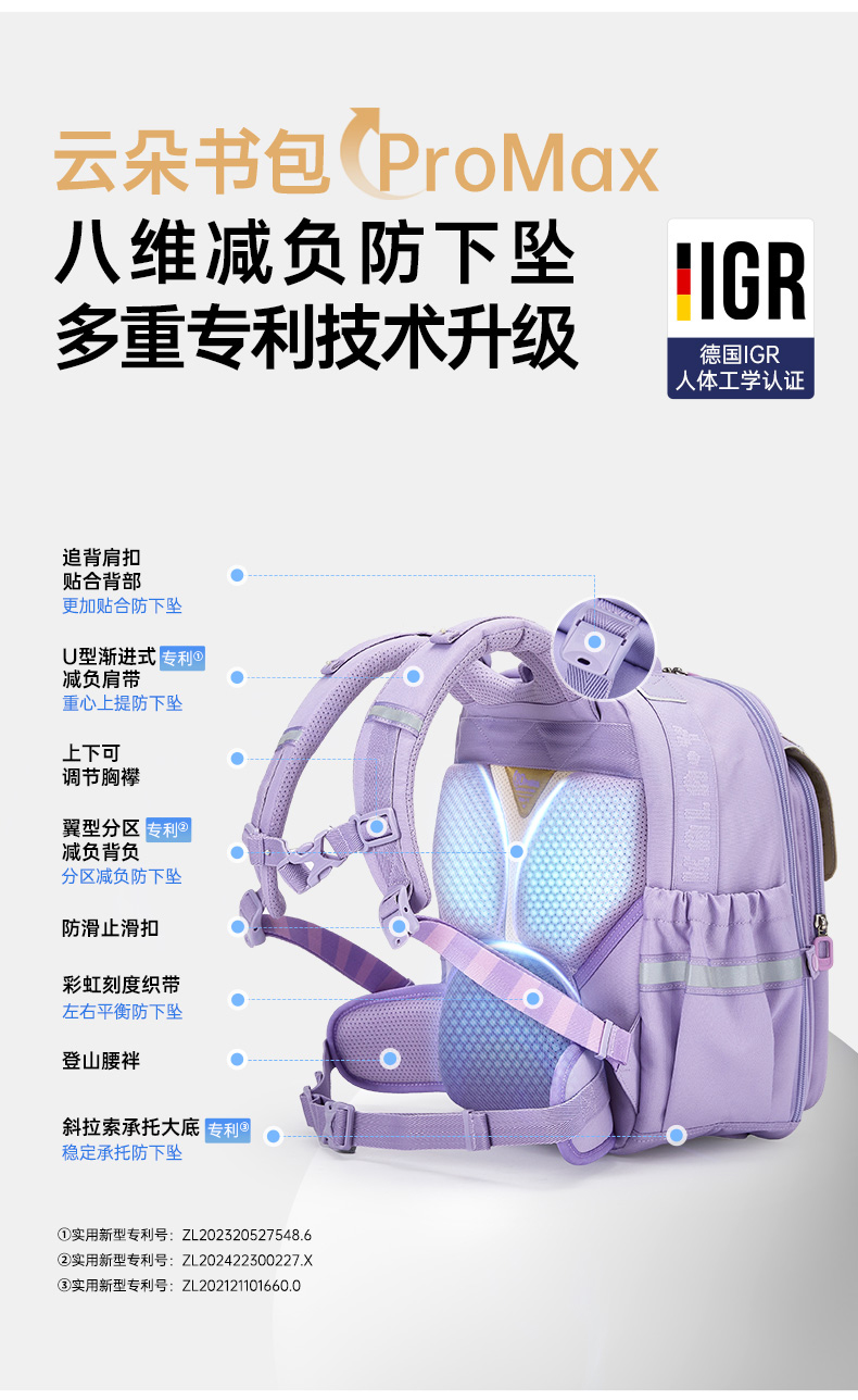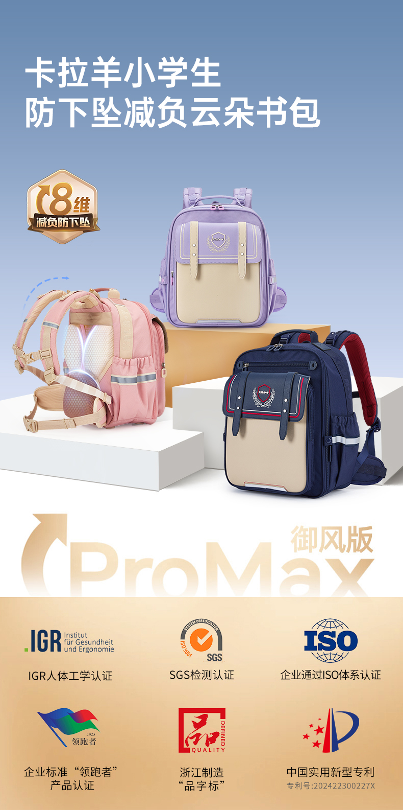 【云朵书包ProMax】卡拉羊18/20L小学生1-6年级ProMax8维减负云朵书包传奇 CX2263+CX2793