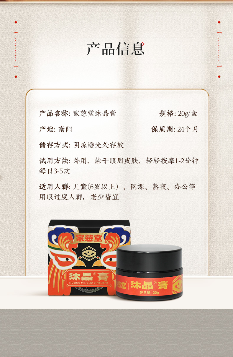 【非遗配方明眸护眼】家慈堂沐晶膏百年非遗传承匠心守护植物萃取缓解疲劳保护视力5分钟随时随地呵护双眸安全配方滋养双眼老花眼近视眼中老年20g/盒