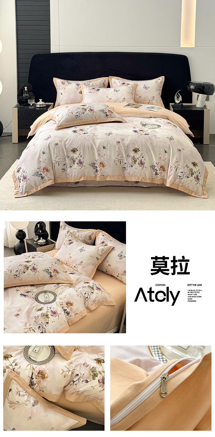 秋冬季加厚磨毛四件套80支全棉纯棉床单被套美式保暖1.8m床上用品